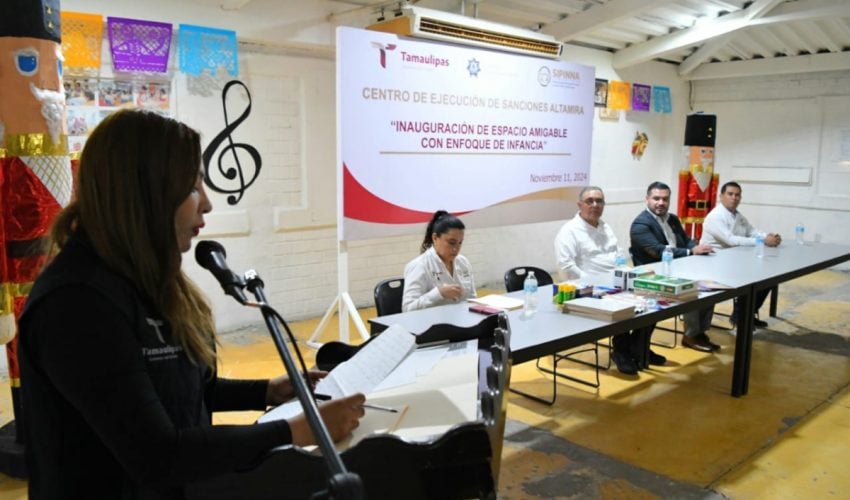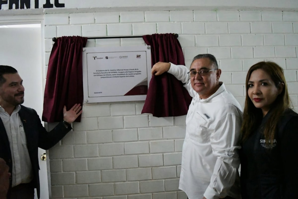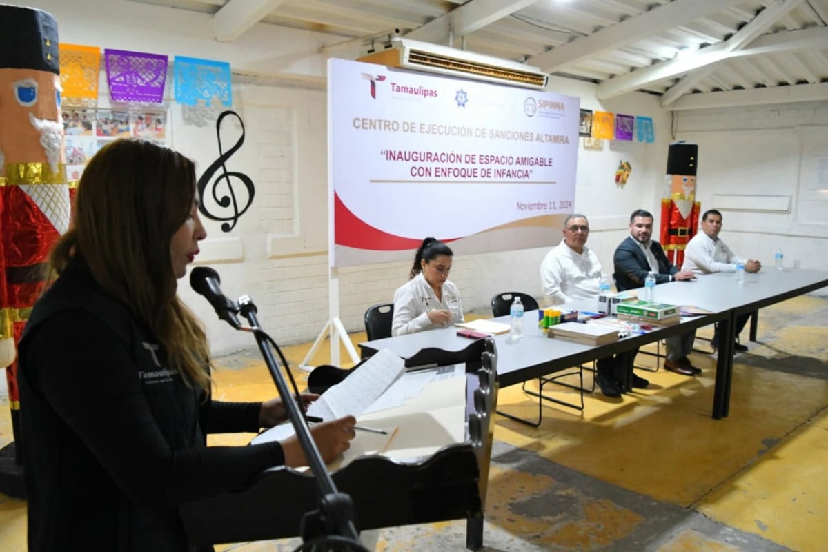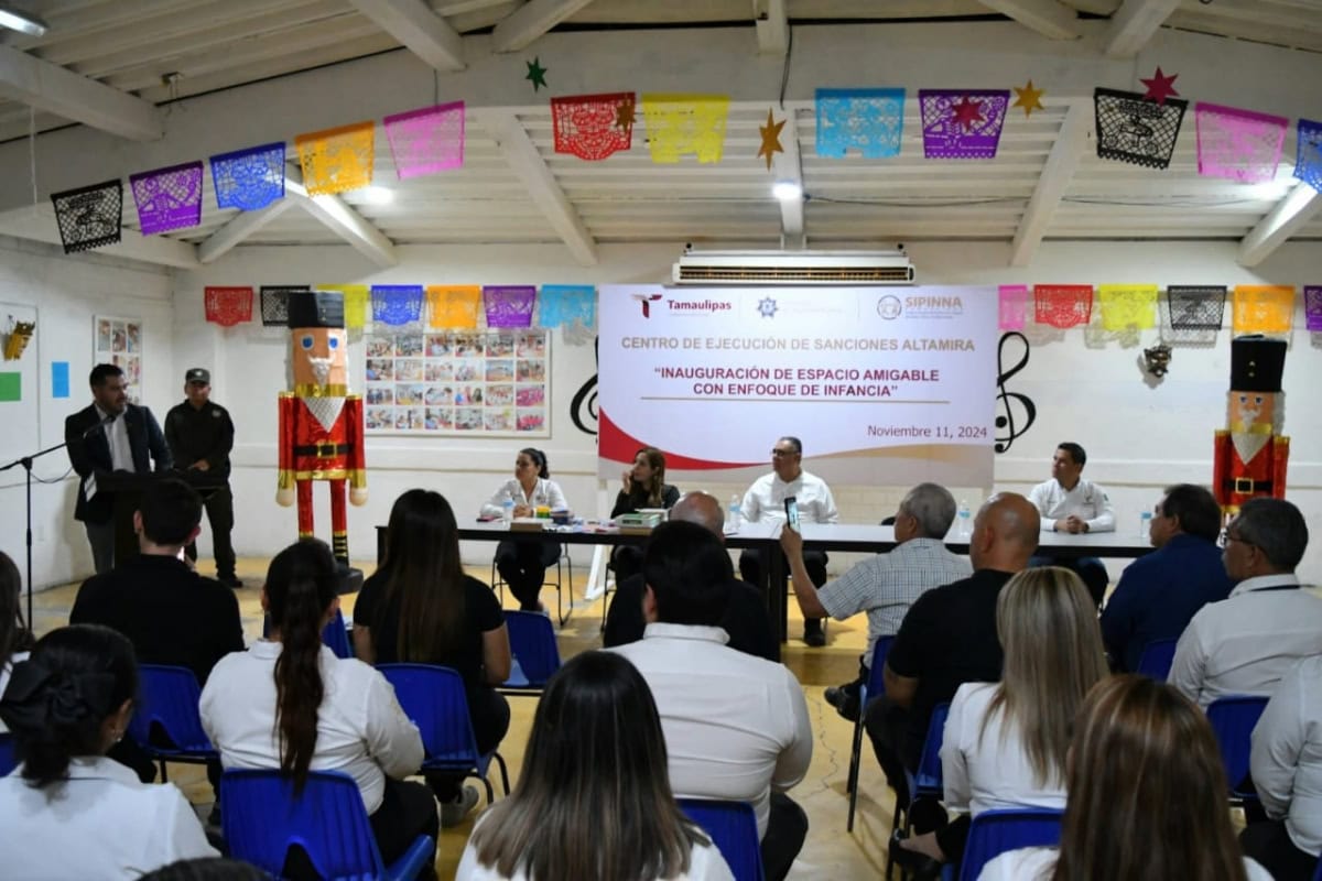 Altamira, Tamaulipas. – Con base en el respeto a los derechos de las niñas y los niños, la Secretaría de Seguridad Pública de Tamaulipas (SSPT) en colaboración con el Sistema Nacional de Protección de Niñas, Niños y Adolescentes (SIPINNA) en la entidad, inauguraron un Espacio Amigable con Enfoque de Infancia en el Centro de Ejecución de Sanciones (CEDES) del municipio de Altamira.