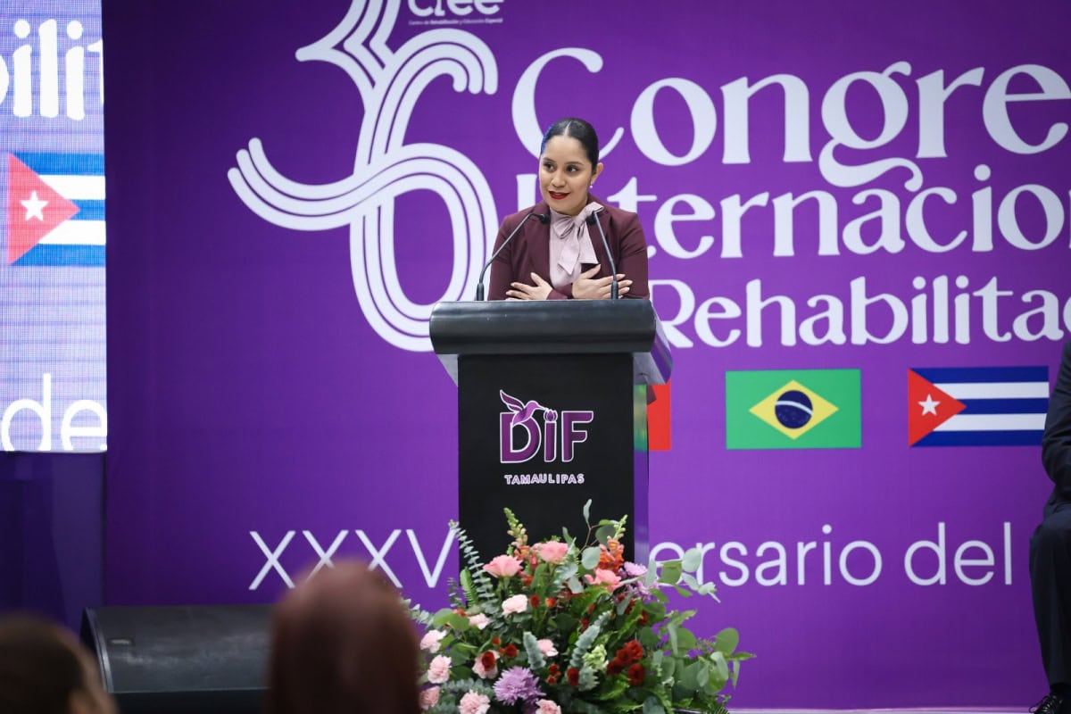 Ciudad Victoria, Tamaulipas.- En el marco de la conmemoración del 36 aniversario del Centro de Rehabilitación y Educación Especial (CREE), el Sistema DIF Tamaulipas, que preside la doctora María de Villarreal, llevó a cabo el primer Congreso Internacional de Rehabilitación, con la participación de especialistas latinoamericanos, además de profesionales y alumnos de diversas instituciones y escuelas de nivel superior del estado.