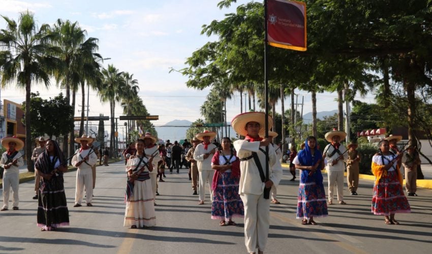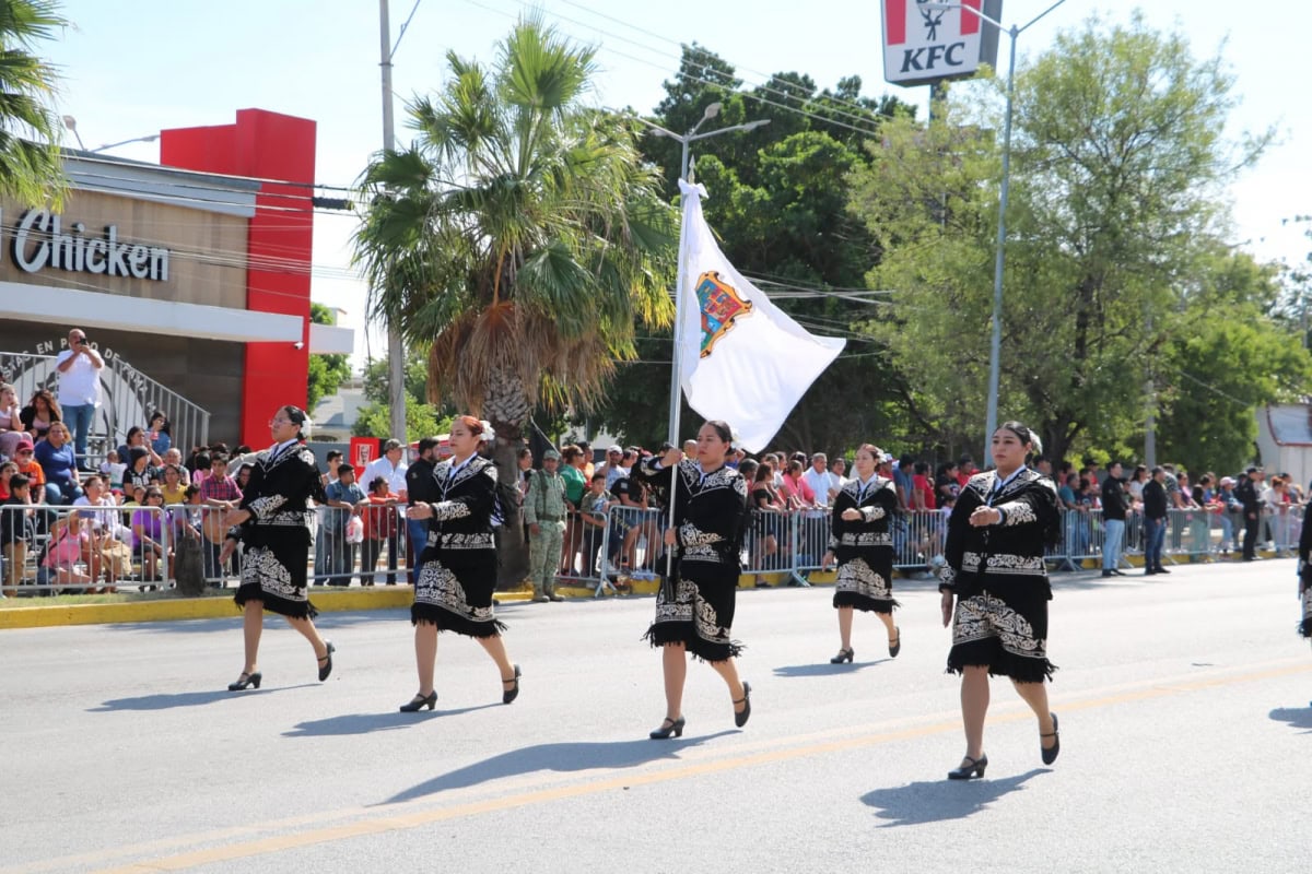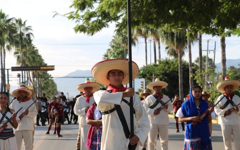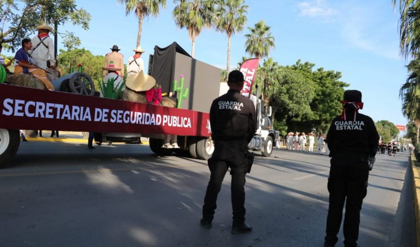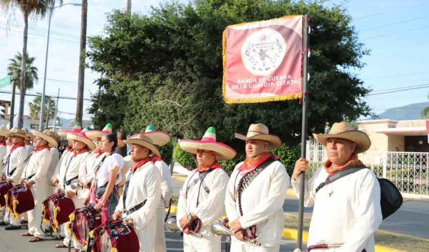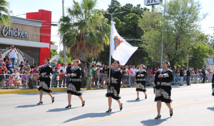Marcando la cadencia, la Banda de Guerra de la Guardia Estatal avanzó sobre la Avenida Tamaulipas y dio paso al carro alegórico que proyectó una reseña histórica sobre la participación de personajes oriundos de la entidad en la lucha armada del 20 de noviembre de 1910 destacando el papel de las mujeres conocidas como “adelitas” o “soldaderas”, mismas que fueron representadas por colaboradoras de esta dependencia.