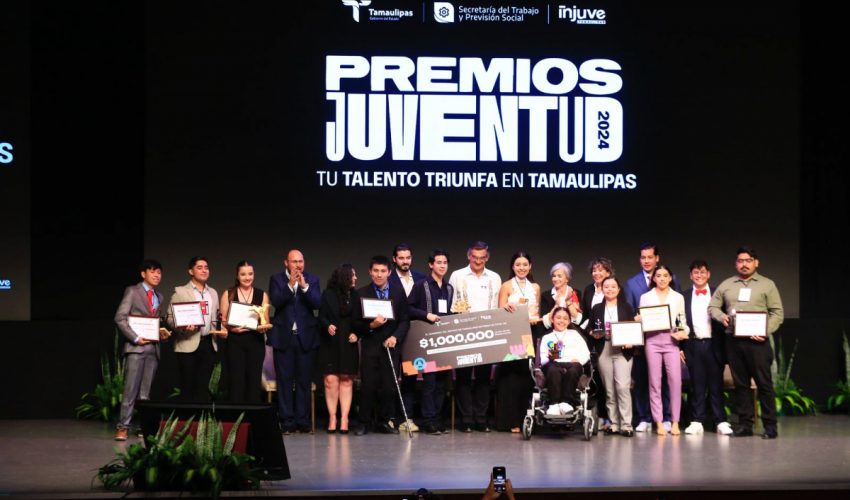 Al presidir, junto con la titular del DIF Estatal, María de Villarreal, la ceremonia de entrega de premios “Juventud 2024, Tu Talento Triunfa en Tamaulipas”, en donde se reconoció a los ganadores del Premio Estatal de la Juventud y del Premio Estatal del Deporte, el gobernador Américo Villarreal destacó que se ha corregido una grave omisión del pasado, que era la falta de una política de juventud robusta, integral y seria.