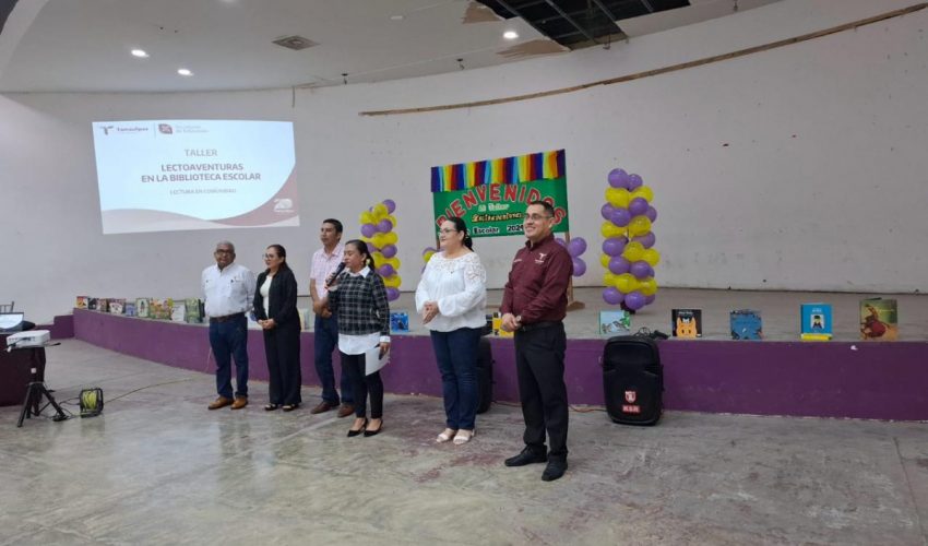 Soto la Marina, Tamaulipas.– Con la finalidad de fomentar el hábito de la lectura entre las niñas y niños que cursan su educación básica en la entidad, docentes y bibliotecarios participaron en el taller “Lectoaventuras en la biblioteca escolar”, organizado por la Dirección de Programas Transversales de la Secretaría de Educación de Tamaulipas.