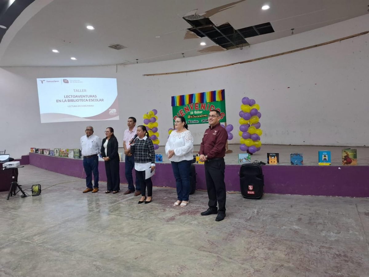 Soto la Marina, Tamaulipas.– Con la finalidad de fomentar el hábito de la lectura entre las niñas y niños que cursan su educación básica en la entidad, docentes y bibliotecarios participaron en el taller “Lectoaventuras en la biblioteca escolar”, organizado por la Dirección de Programas Transversales de la Secretaría de Educación de Tamaulipas.