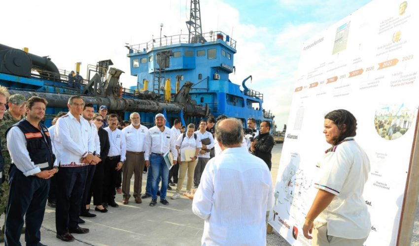 En este recorrido y al pie de las dragas Montebello y Banderas, de la Secretaría de Marina, el director general de la Administración Portuaria Integral de Tamaulipas (API), Gustavo Guzmán Fernández, presentó una amplia explicación de los avances, planes de desarrollo y los retos que enfrenta el Puerto del Norte, un proyecto histórico que hoy se ha cristalizado gracias a la visión del gobernador Américo Villarreal.