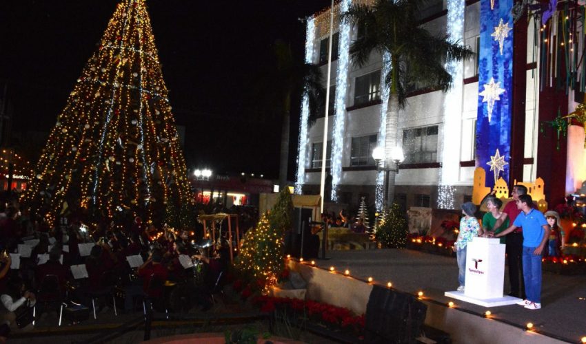 Luego de presenciar, en el 17 Hidalgo, el desfile navideño que inició en el Paseo Pedro J. Méndez y siguió por toda la avenida Francisco I. Madero, con la participación de 24 carros alegóricos de todas las dependencias del Gobierno del Estado y empresas privadas, el gobernador se trasladó a la Plaza Juárez, en donde, junto con miles de familias, encendió el pino navideño.