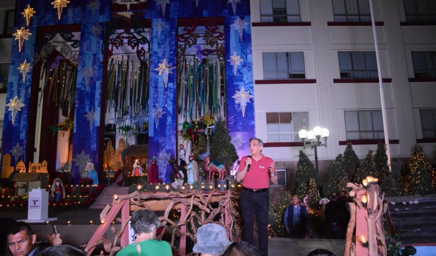 Ciudad Victoria, Tamaulipas. – En un ambiente de fiesta, lleno de espíritu humanista, el gobernador Américo Villarreal Anaya y la presidenta del DIF Estatal, doctora María de Villarreal, encendieron el monumental pino navideño y expresaron sus mejores deseos para que estas celebraciones sirvan para fortalecer la unidad, la convivencia y la paz de las y los tamaulipecos.