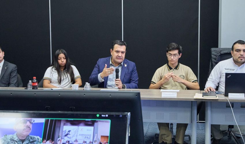 Ciudad Victoria, Tamaulipas. – El gobernador Américo Villarreal Anaya y los integrantes de la Mesa de Coordinación de Seguridad iniciaron las Jornadas por la Paz y sostuvieron un diálogo con estudiantes de escuelas secundarias y preparatorias, quienes conocieron las acciones y el trabajo diario que ha permitido posicionar a Tamaulipas entre los diez estados más seguros del país.