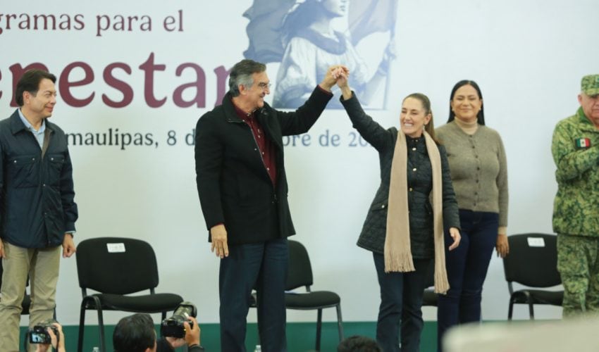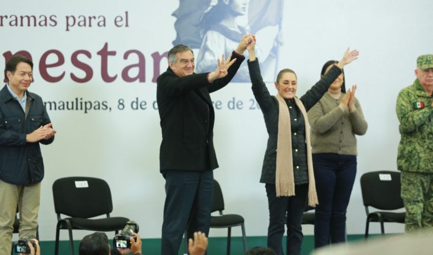 La presidenta de México afirmó que «el pueblo de Tamaulipas es mucha pieza» y también hizo un reconocimiento al gobernador Américo Villarreal.