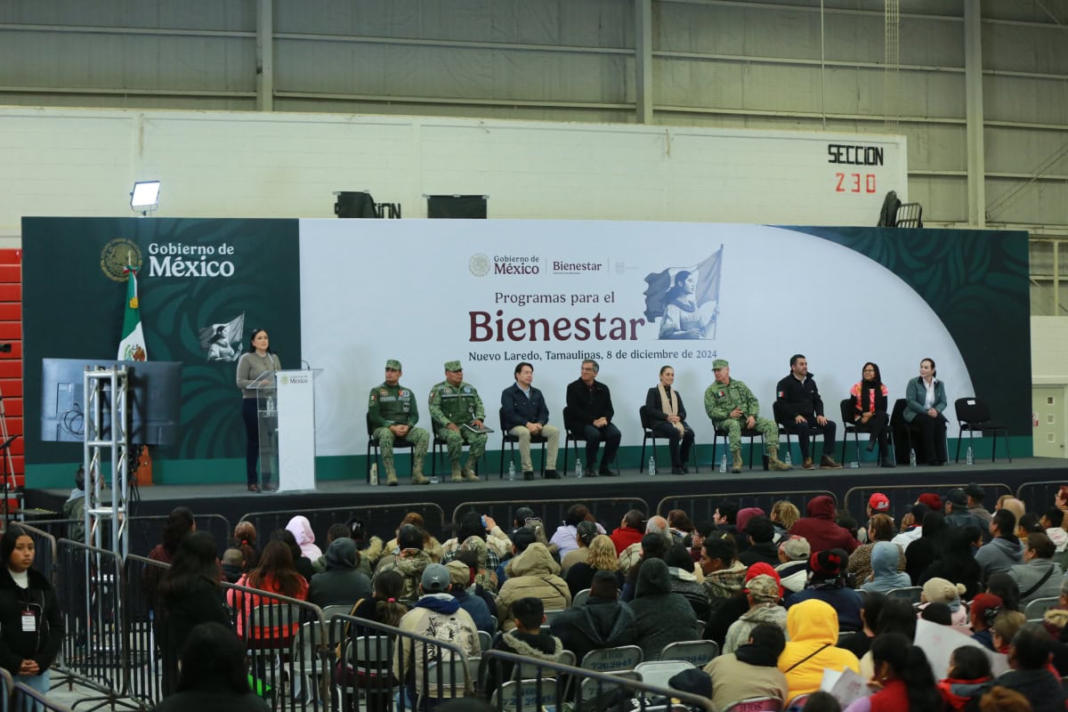 En el evento, Ariadna Montiel Reyes, secretaria de Bienestar, mencionó que en Tamaulipas casi 700,000 personas —niñas, niños, personas con discapacidad, jóvenes estudiantes, adultos mayores y campesinos— reciben Programas de Bienestar.