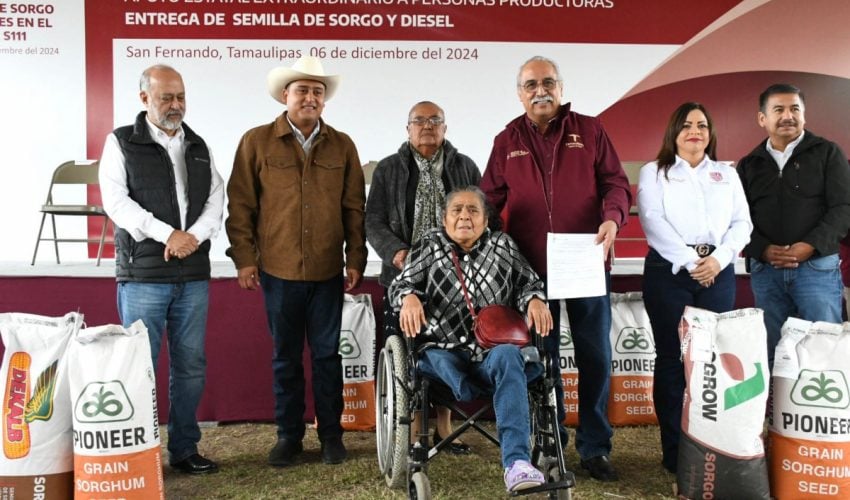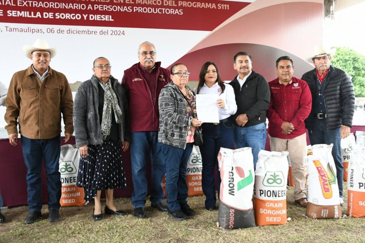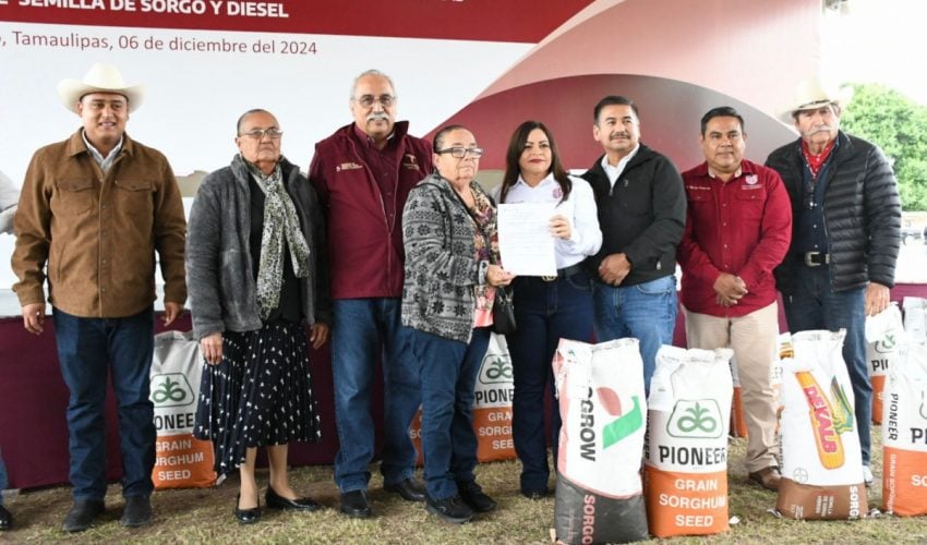 Reciben productores agrícolas de la zona norte de Tamaulipas semilla de sorgo y diésel