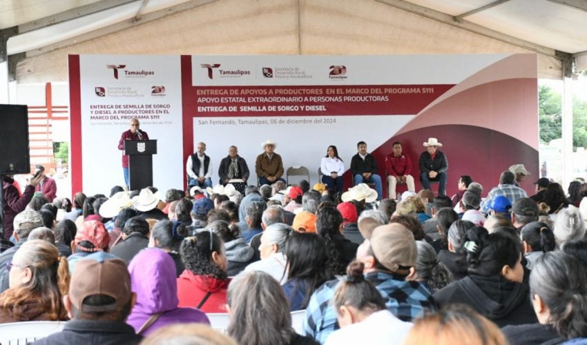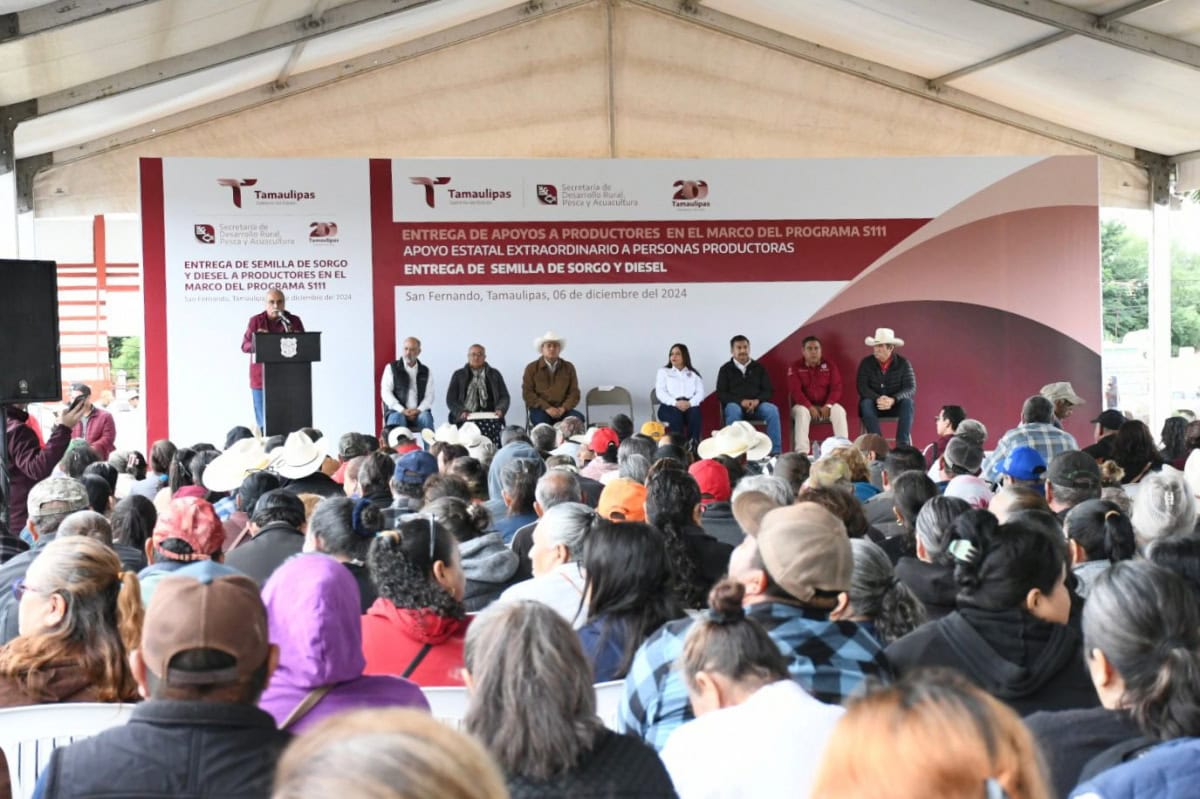 San Fernando, Tamaulipas.- Con la firme intención de apoyar, mejorar y fortalecer el sector agrícola de Tamaulipas, el Gobierno del Estado, encabezado por Américo Villarreal Anaya, realizó la entrega del apoyo estatal extraordinario de semilla y diésel. Esto forma parte del programa Atención de Situaciones de Contingencia o Eventualidades en el Sector Rural 2024, con el cual los agricultores podrán dar continuidad a las labores del ciclo agrícola de manera más eficiente y oportuna.