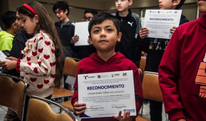 Las y los niños recibieron reconocimientos por su participación en «Radio Aventura» y «Los cueruditos y cueruditas», proyectos auspiciados por el Instituto Tamaulipeco para la Cultura y las Artes (ITCA), el programa nacional Alas y Raíces y una colaboración con Radio Tamaulipas.