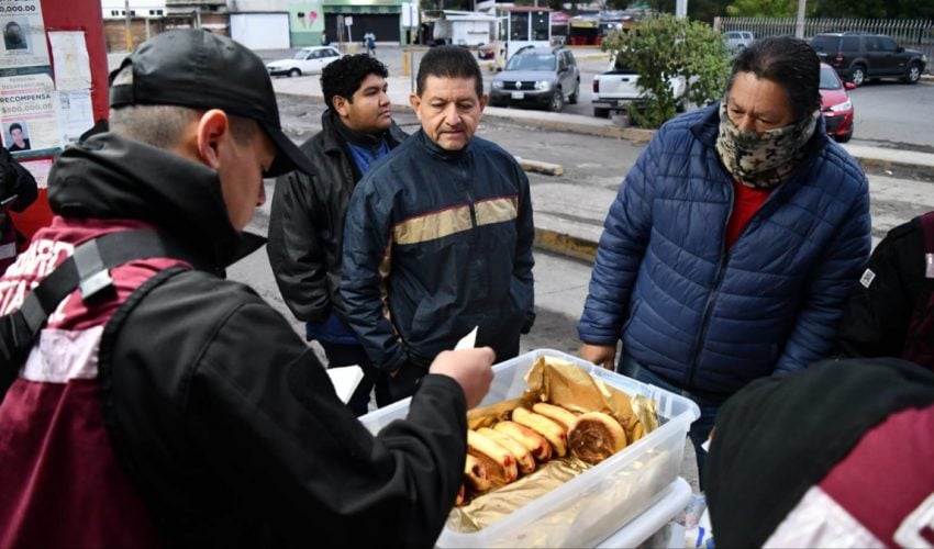 Ciudad Victoria, Tamaulipas. – Como parte de las acciones del Plan Tamaulipas, personal de la Guardia Estatal de Género entregó alimentos y bebidas calientes a viajeros en la Central de Autobuses de Ciudad Victoria.