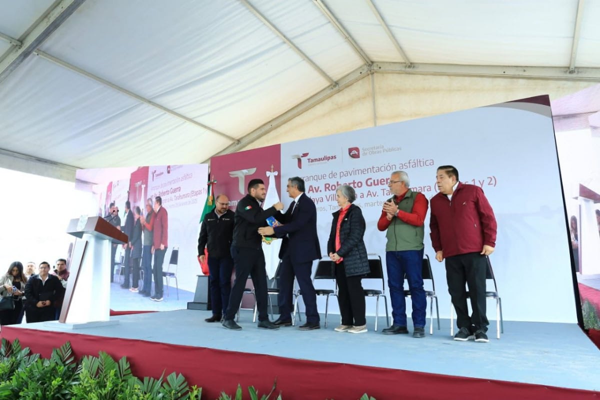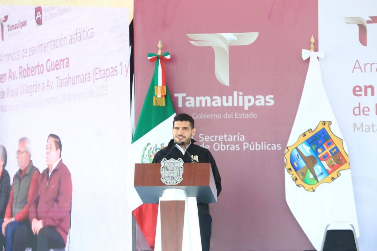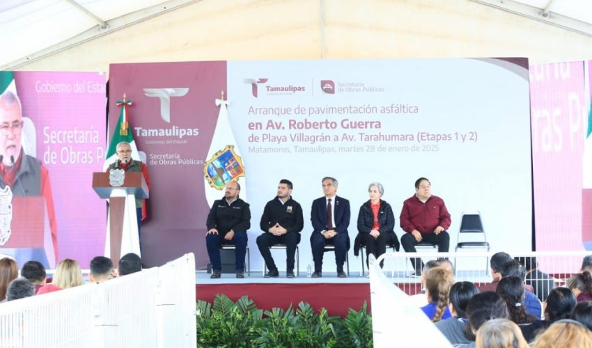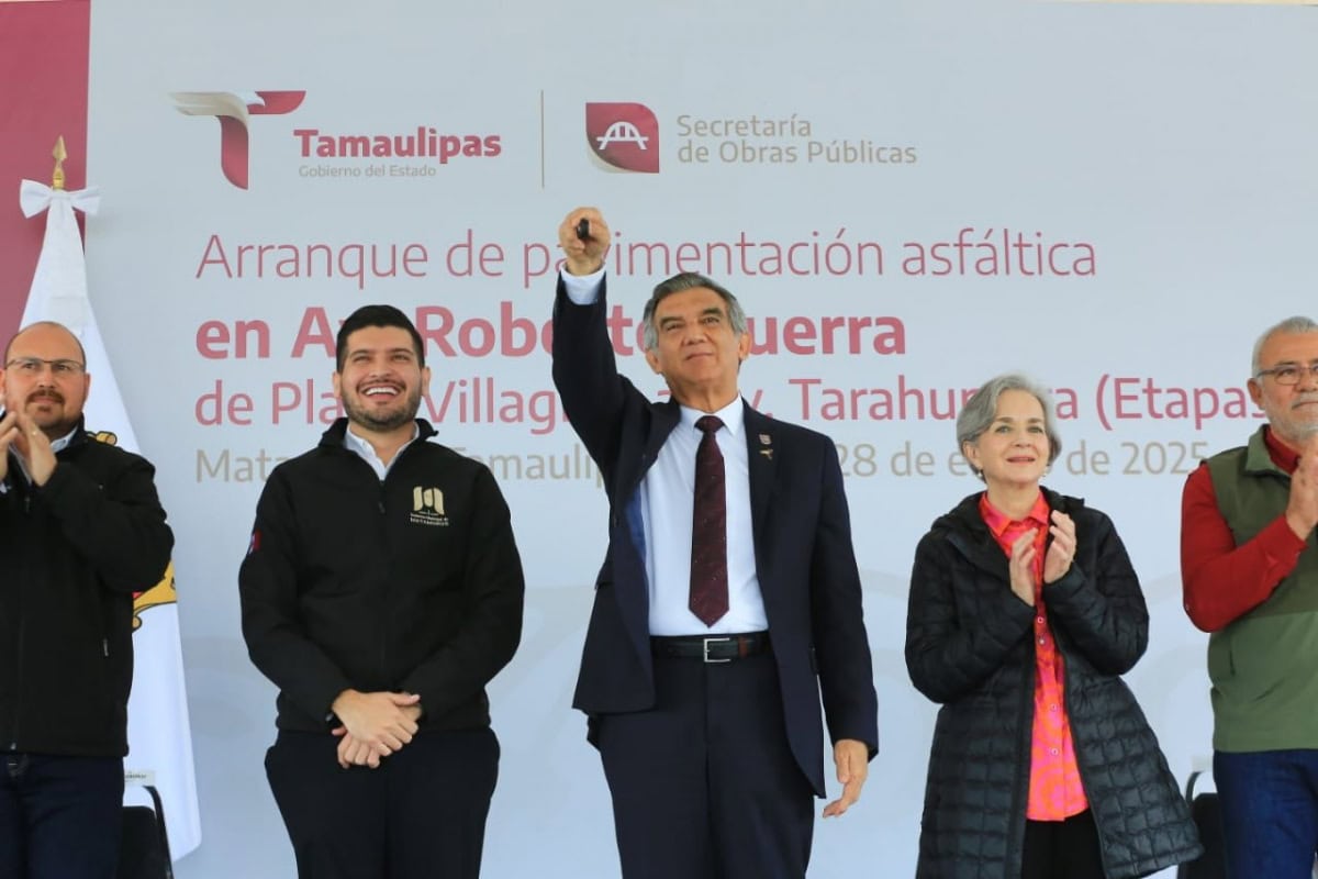 Como parte de su gira de trabajo, Villarreal Anaya dio el banderazo de inicio a la pavimentación asfáltica de la avenida Roberto Guerra, de playa Villagrán a la avenida Tarahumara, con un importe asignado de 38 millones 336 mil 533 pesos, en beneficio de más de 23 mil matamorenses.