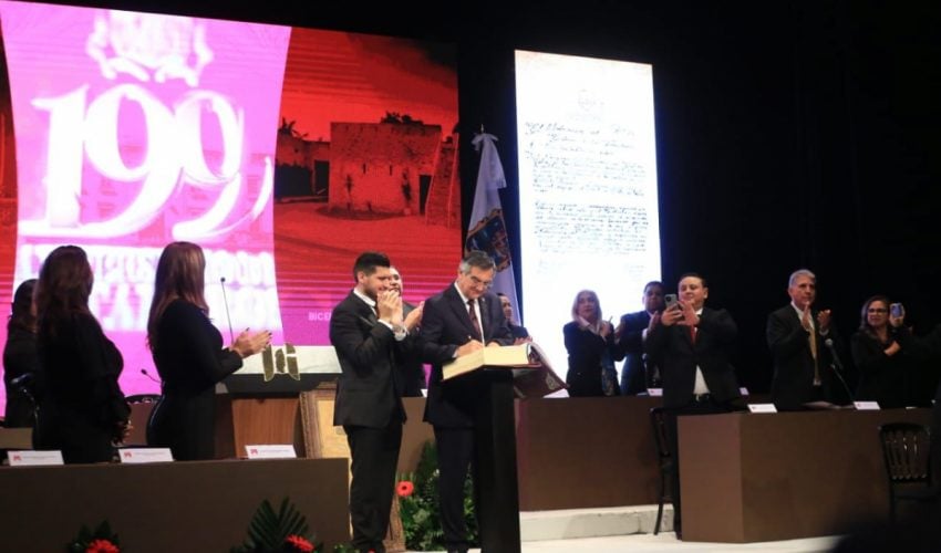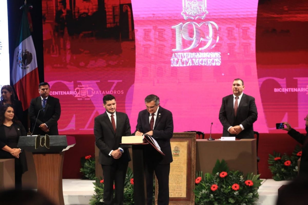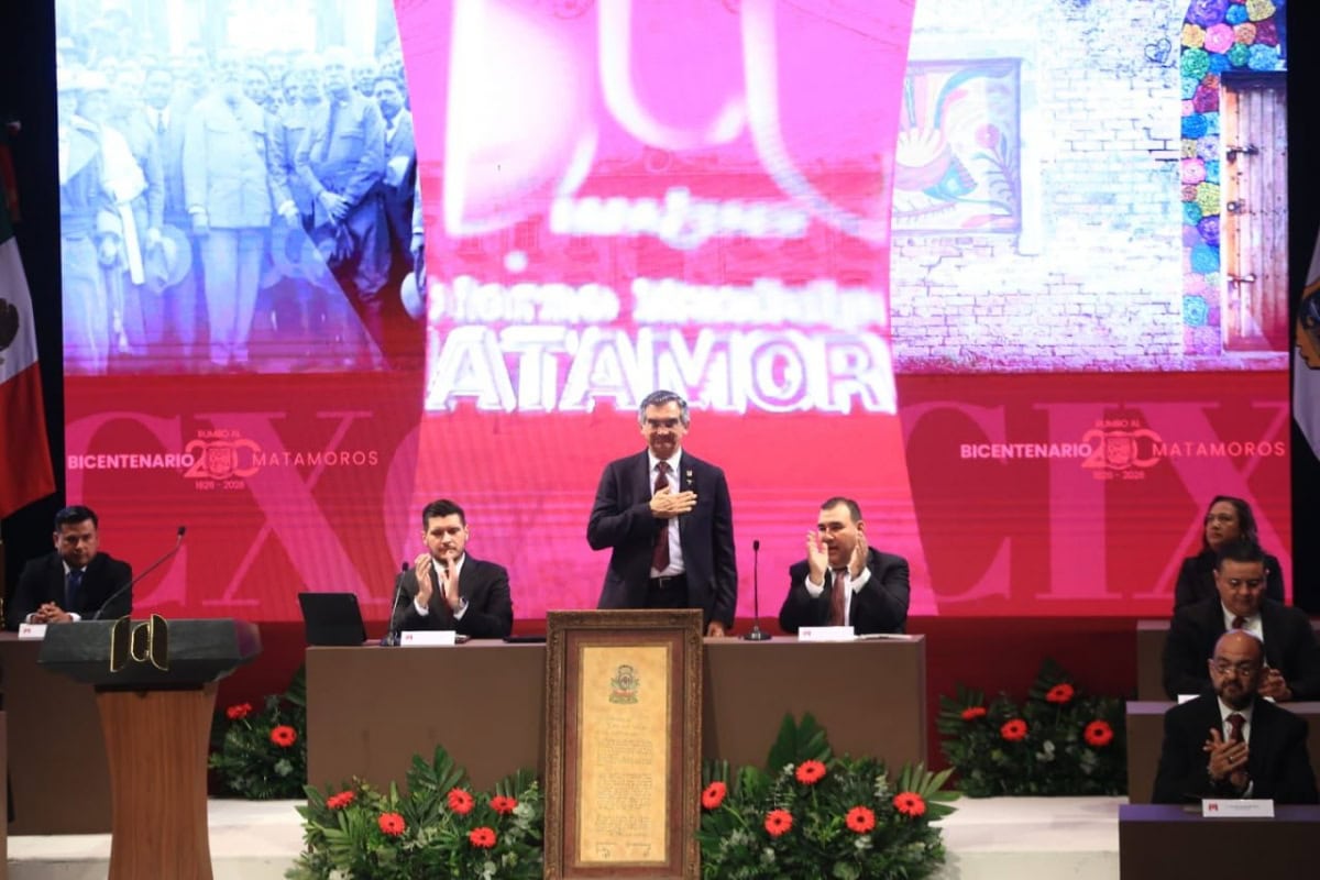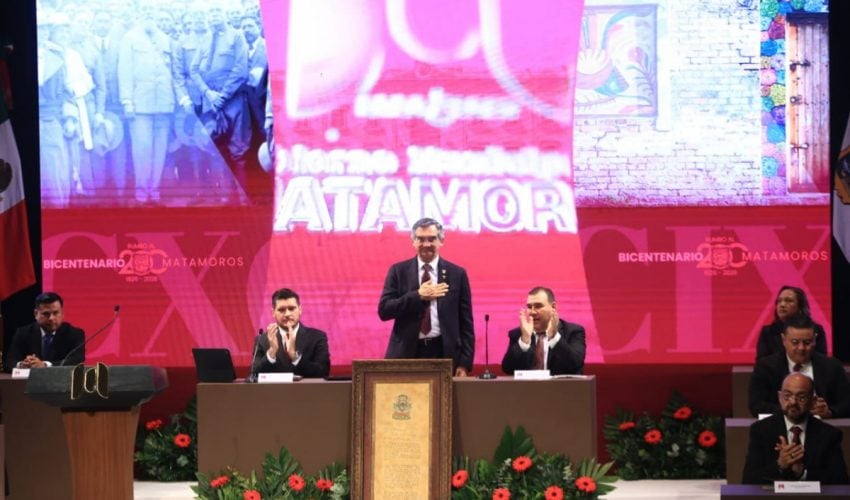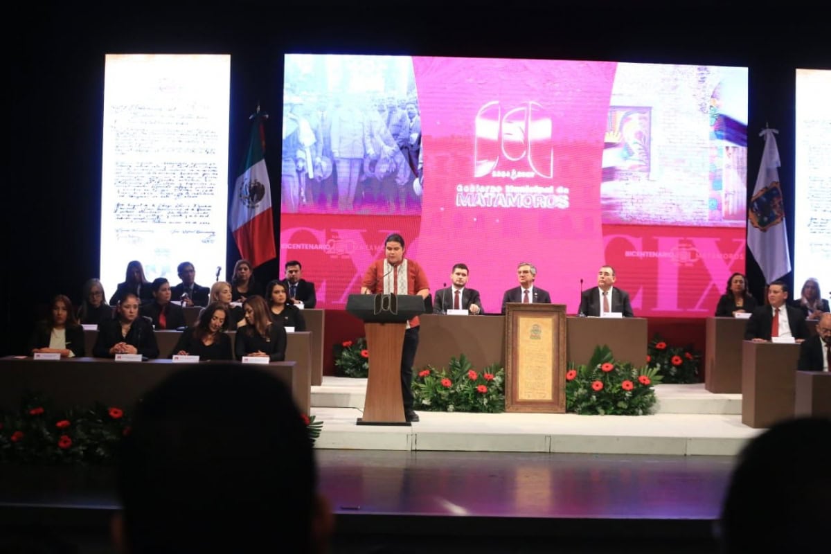 Durante la sesión solemne del cabildo matamorense, encabezada por el alcalde José Alberto Granados Favila, en el Teatro Reforma, el gobernador destacó la importancia y grandeza de Matamoros y su sociedad que a lo largo de dos siglos ha sido verdaderamente heroica.