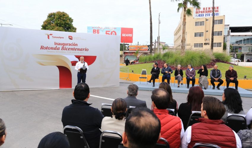 Al inaugurar la Glorieta Bicentenario, ubicada en los bulevares López Mateos y Fidel Velázquez de este puerto de Tampico, el mandatario estatal, quien estuvo acompañado de la presidenta del DIF Estatal, María de Villarreal y la presidenta municipal, Mónica Villarreal Anaya, señaló que, aplicando estos principios, han realizado obras en beneficio de las y los tamaulipecos.