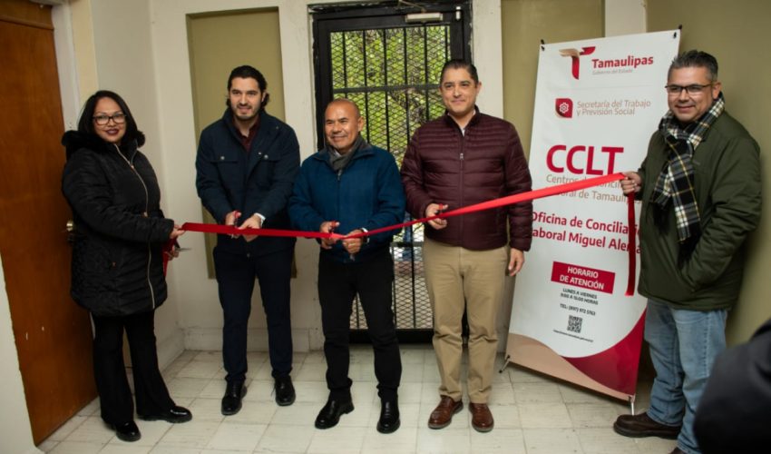 Miguel Alemán, Tamaulipas.- Con la finalidad de acercar la justicia laboral, fue inaugurada la Oficina Regional del Centro de Conciliación Laboral en el municipio de Miguel Alemán, cuya apertura estuvo a cargo de Luis Gerardo Illoldi Reyes, secretario del Trabajo y Previsión Social en Tamaulipas, y del director general del Centro de Conciliación Laboral de Tamaulipas, José Ives Soberón Mejía.
