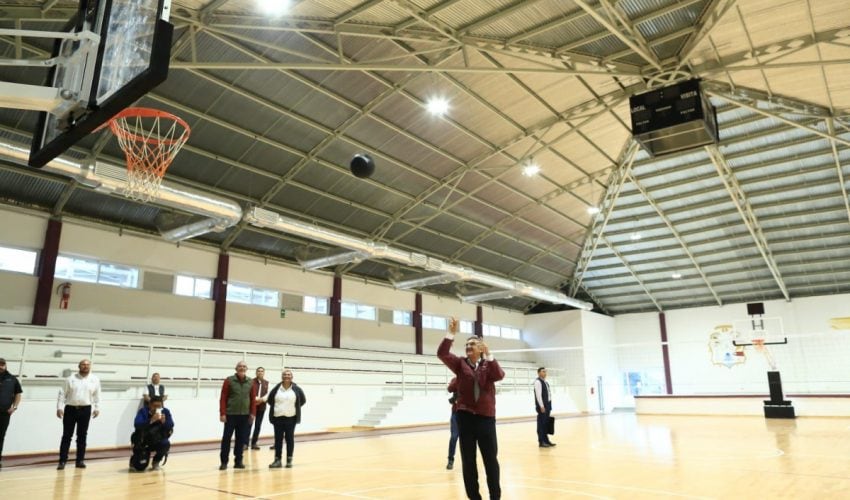 Respecto a los trabajos en el Gimnasio «Las Liebres», Pedro Cepeda explicó que se realizó la rehabilitación de estructura metálica; reposición de 1,450 metros cuadrados de lámina y cubierta de poliuretano espreado; reposición de ventanas; suministro e instalación de 730 metros cuadrados de duela de maple; ocho equipos de aire acondicionado de 10 toneladas; rehabilitación de baños; dos canastas con protección acolchada y levantamiento automático; sistema para cancha de voleibol y 400 asientos de butaca, todo con un importe asignado de 17 millones 403 mil 459 pesos.