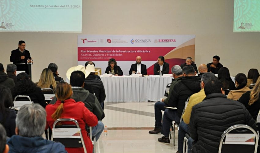 Ciudad Victoria, Tamaulipas. – La Secretaría de Recursos Hidráulicos para el Desarrollo Social, bajo la dirección de Raúl Quiroga Álvarez, en coordinación con la Comisión Nacional del Agua (CONAGUA), la Auditoría Superior del Estado (ASE), la Secretaría de Bienestar del Estado y el Sistema de Administración Tributaria (SAT), llevó a cabo la presentación de los objetivos para la elaboración del Plan Municipal de Infraestructura Hidráulica que deriva del Plan Nacional Hídrico impulsado por la presidenta Claudia Shienbaum.
