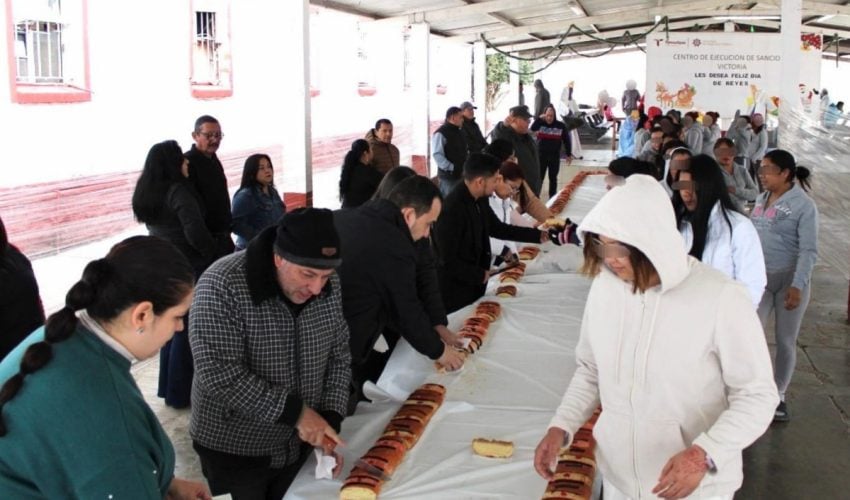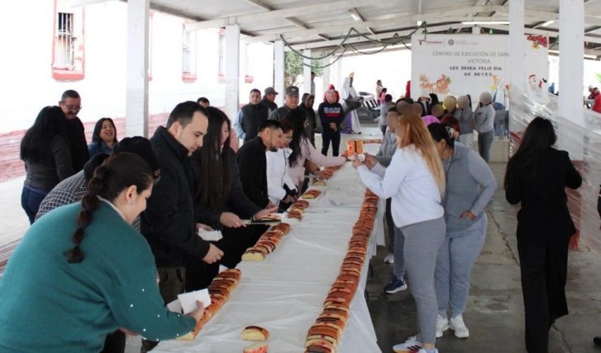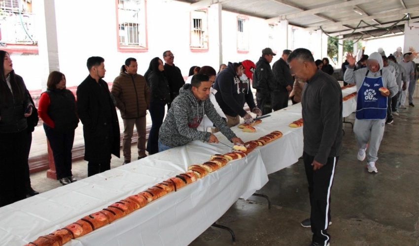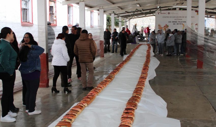 Ciudad Victoria, Tamaulipas.- Con una tradicional Rosca de Reyes de 30 metros de largo, el Centro de Ejecución de Sanciones (CEDES) de Ciudad Victoria celebró esta festividad en la que convivieron Personas Privadas de la Libertad (PPLs), sus familias, personal administrativo y de seguridad que laboran en este centro.