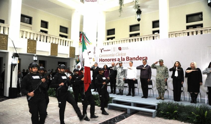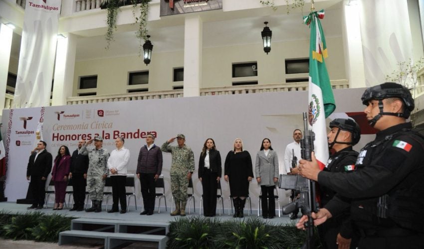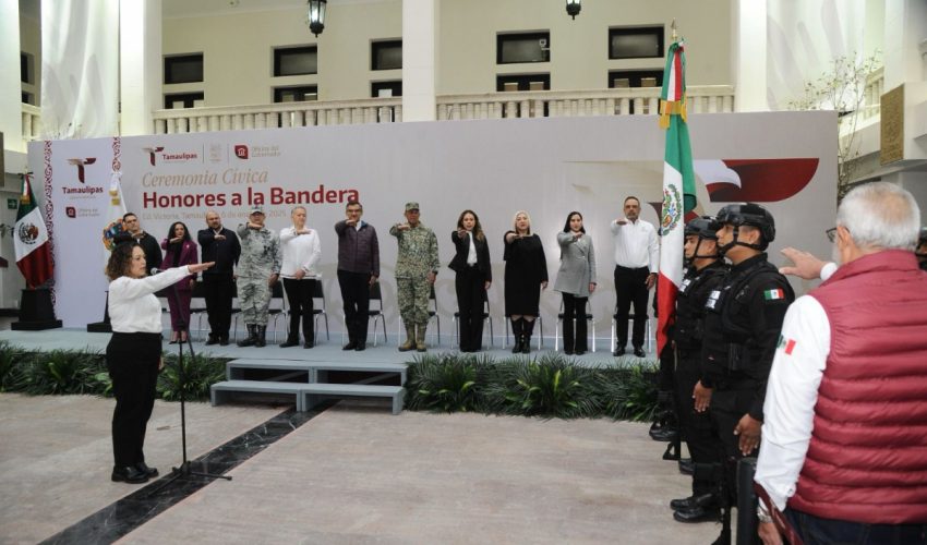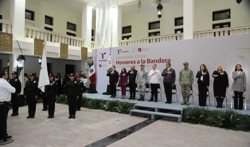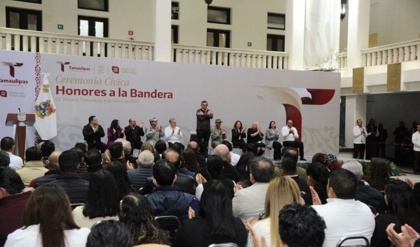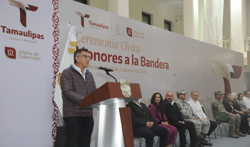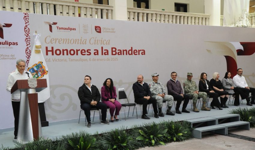 Al presidir la primera ceremonia cívica de honores de 2025, en la explanada central de Palacio de Gobierno, el mandatario tamaulipeco llamó a las y los servidores públicos a trabajar en una agenda humanista, con gran ahínco y dedicación, para seguir transformando a Tamaulipas.