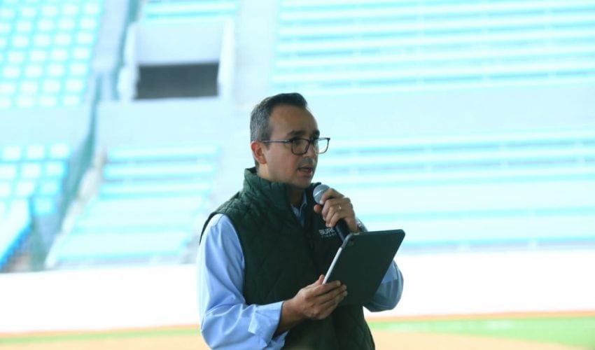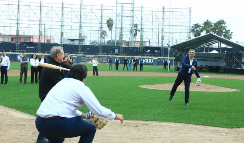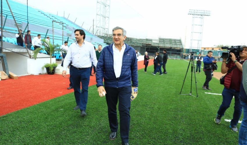 Por la tarde, el gobernador visitó el Parque de Béisbol “Adolfo López Mateos”, donde recibió una amplia explicación de los trabajos de remodelación que realiza el Grupo Burgos.