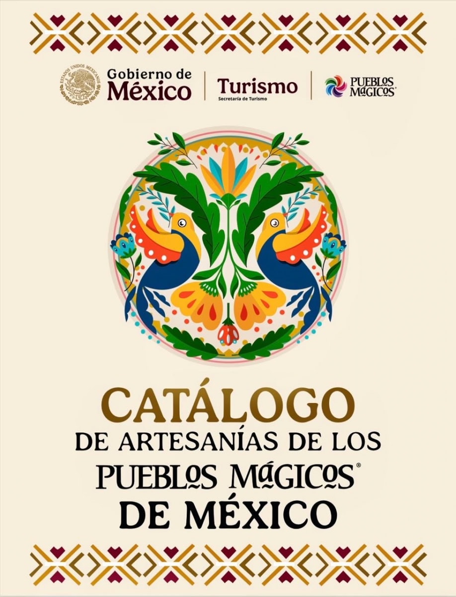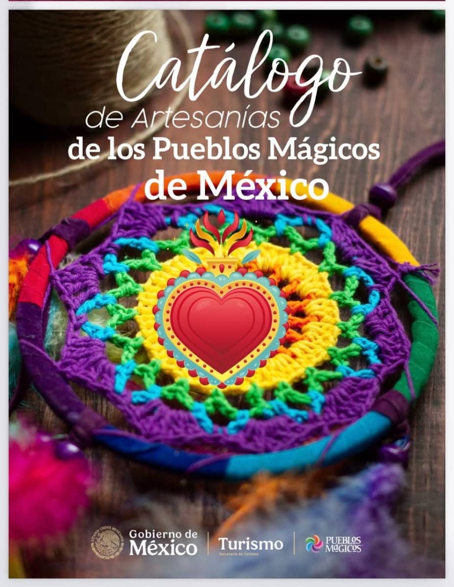 En el catálogo aparecen diversas piezas, como danzantes tallados en madera, arte en bule, hamacas de ixtle, esculturas en barro, servilletas bordadas, keskemel de maya, muñecas Lele, bordados en punto de cruz, chaquira y mucho más.