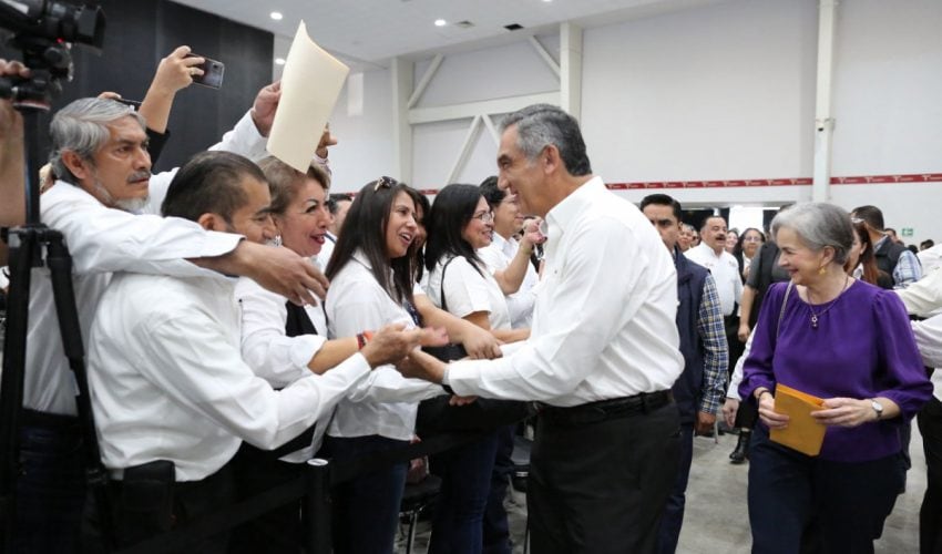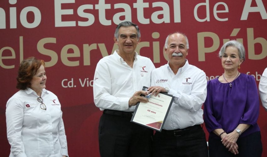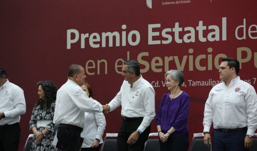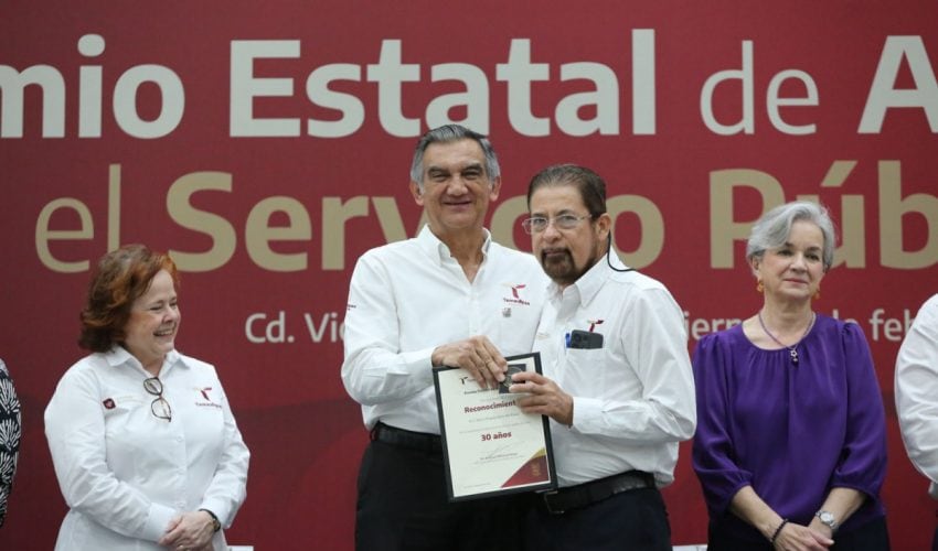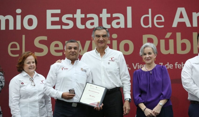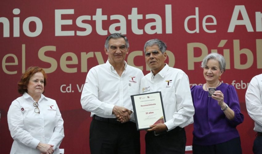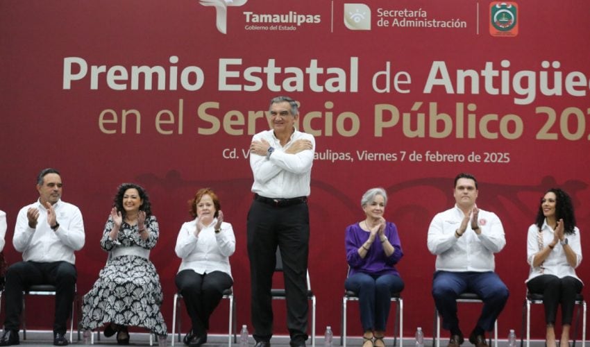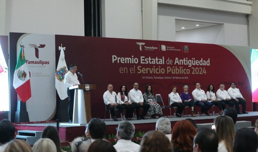 Luego del efusivo recibimiento y los gritos de ¡gobernador!, ¡gobernador! por parte de los asistentes, Américo Villarreal entregó los premios de antigüedad, incluyendo a cuatro trabajadores y trabajadores con 50 años de servicio: María de los Remedios Valles Fuentes (Secretaría de Finanzas); Ramiro Huerta Rodríguez (Secretaría de Obras Públicas); Marco Antonio Valdez Juárez (Secretaría de Administración) y Blanca Guadalupe Valles Rodríguez (Secretaría de Administración).
