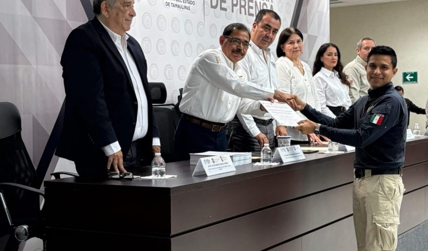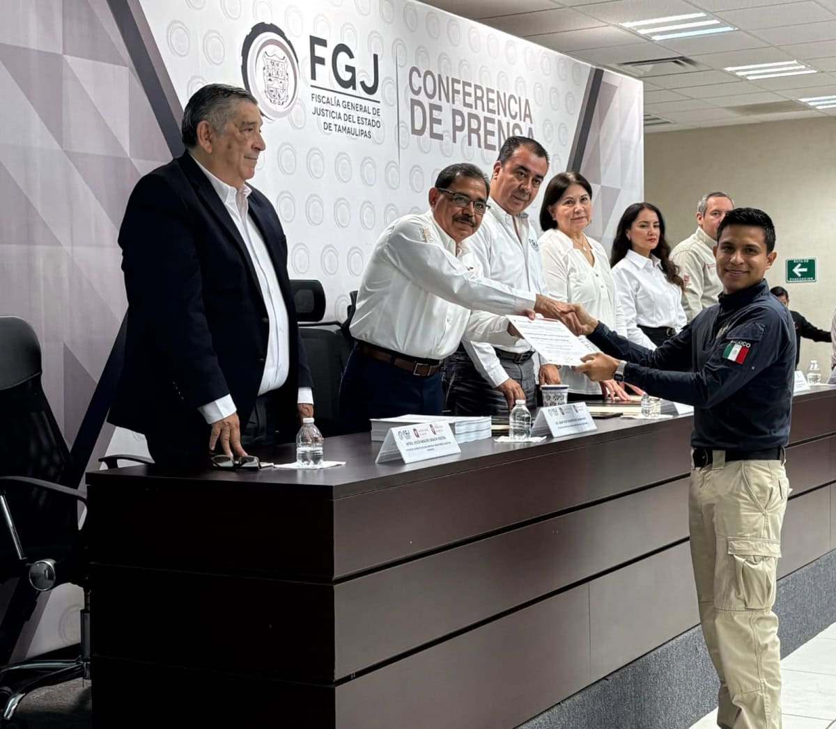 Ciudad Victoria, Tamaulipas.– Derivado de la jornada de capacitación que llevó a cabo el Instituto Tamaulipeco para los Migrantes (ITM) en coordinación con la Unidad de Política Migratoria de la Secretaría de Gobernación, dirigida a servidores públicos de la Fiscalía General de Justicia del Estado de Tamaulipas (FGJ), en materia de Migración y Derechos Humanos, Trata de Personas en Contexto de Movilidad y Migración y No Discriminación, se realizó el acto protocolario de entrega de 3 mil constancias de capacitación, en el que, de manera simbólica, las recibieron 20 servidores públicos de dicha fiscalía.