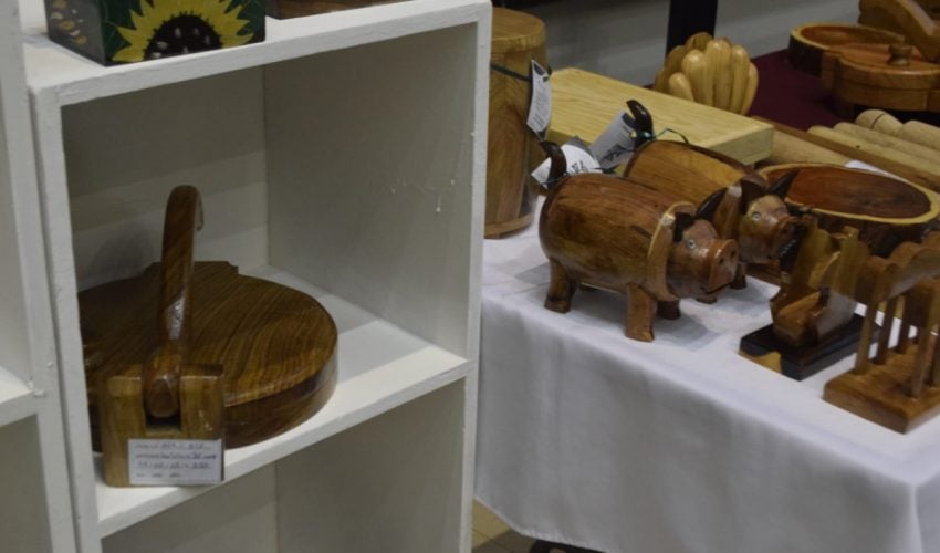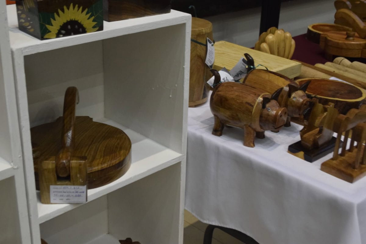 Tarros, utensilios de cocina, cuadros, morteros, imágenes labradas, mecedoras, mesas, sillas y percheros, fueron algunos de los productos expuestos  en las instalaciones del Congreso local.