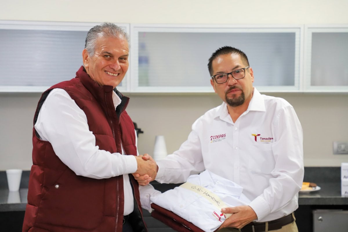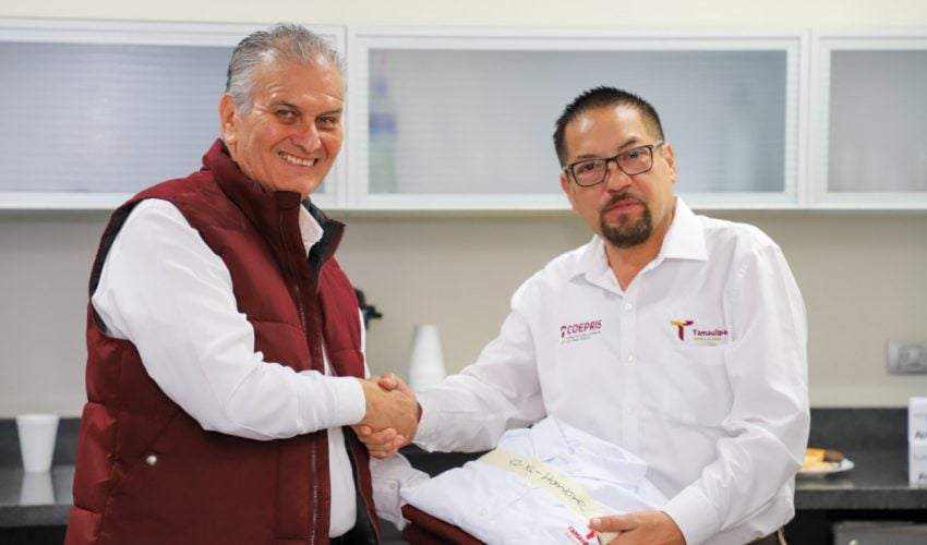 “En el gobierno del doctor Américo Villarreal Anaya, se avanza en la transformación de la regulación sanitaria y mediante la incorporación de la tecnología, se generará mejor confianza a la población en los procesos de verificación a los establecimientos que son sujetos a una regulación de este tipo”, señaló́ Hernández Navarro durante la entrega que se llevó a cabo en las instalaciones de la COEPRIS.