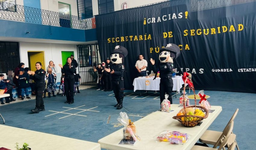 Este acto se realizó durante una jornada escolar, en la cual, se llevaron a cabo acciones de proximidad y difusión de las funciones de la Guardia Estatal de Género, cuyos elementos recibieron canastas de frutas como obsequio.