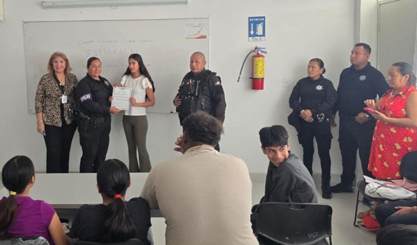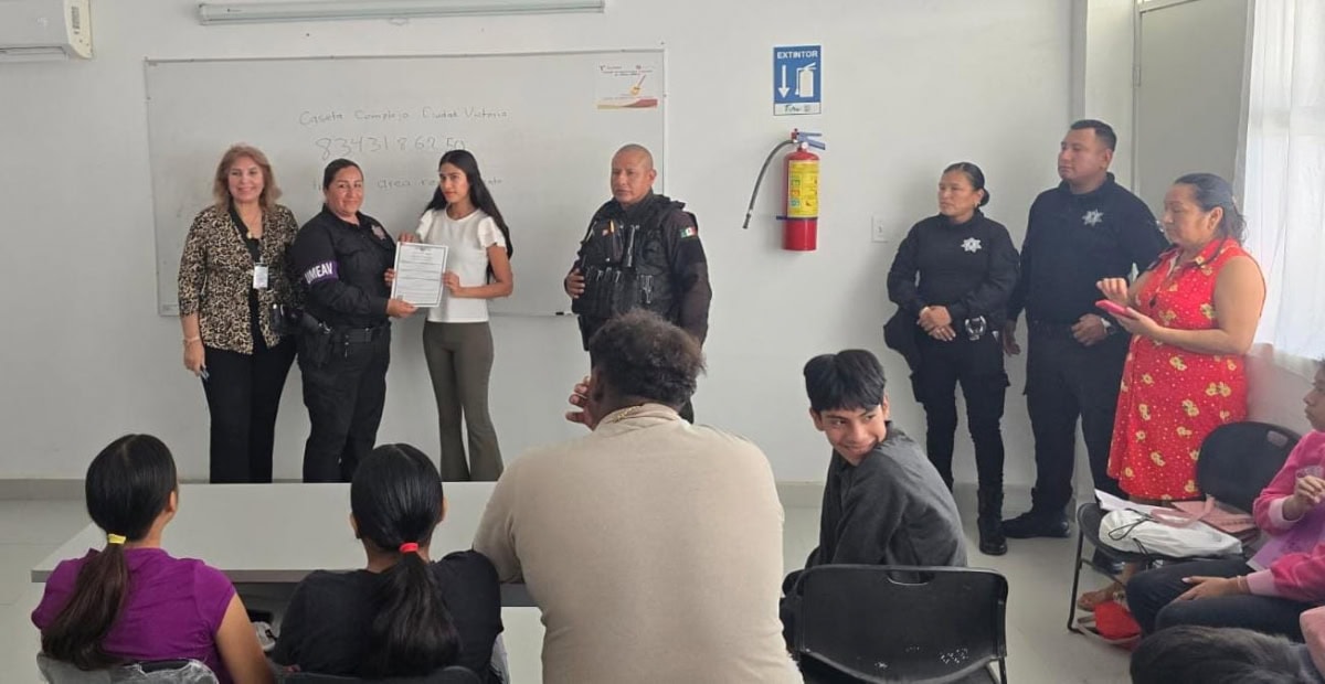 Matamoros, Tamaulipas.- Con la finalidad de difundir las consecuencias físicas, jurídicas y el impacto del consumo de sustancias en casos de violencia, personal de la Guardia Estatal de Género impartió una plática preventiva en el Centro de Bienestar y Paz del municipio de Matamoros.