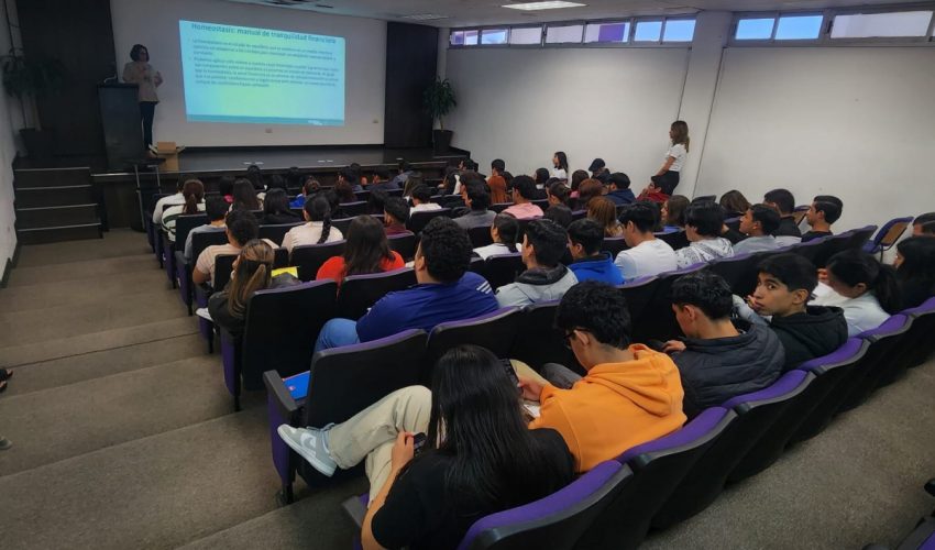 La conferencia “Homeostasis: Manual para tu tranquilidad financiera” fue impartida por María Teresa Borja Chico, gerente de Educación Financiera de BANXICO, ante estudiantes del séptimo y octavo cuatrimestre de la Licenciatura en Administración y Gestión Empresarial. Durante la sesión, se abordaron estrategias y conocimientos clave para lograr la tranquilidad financiera y mejorar el bienestar económico.