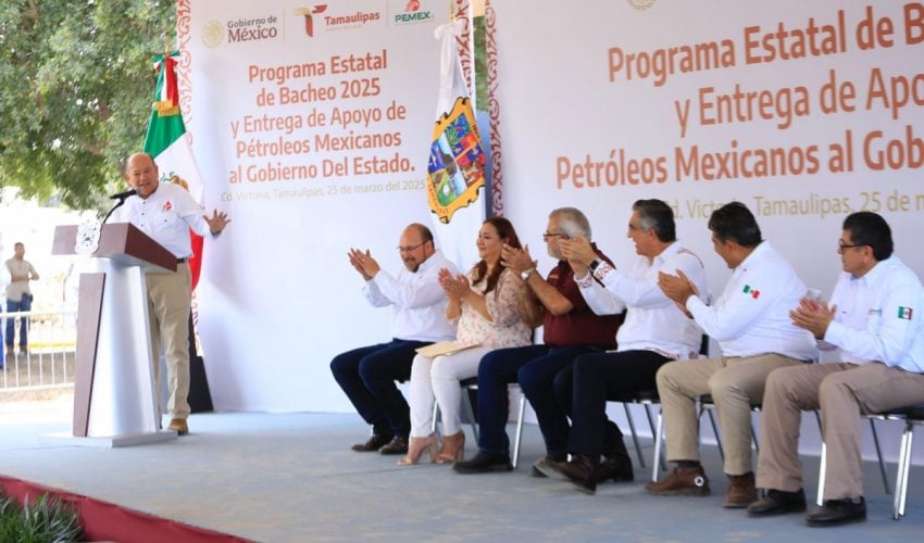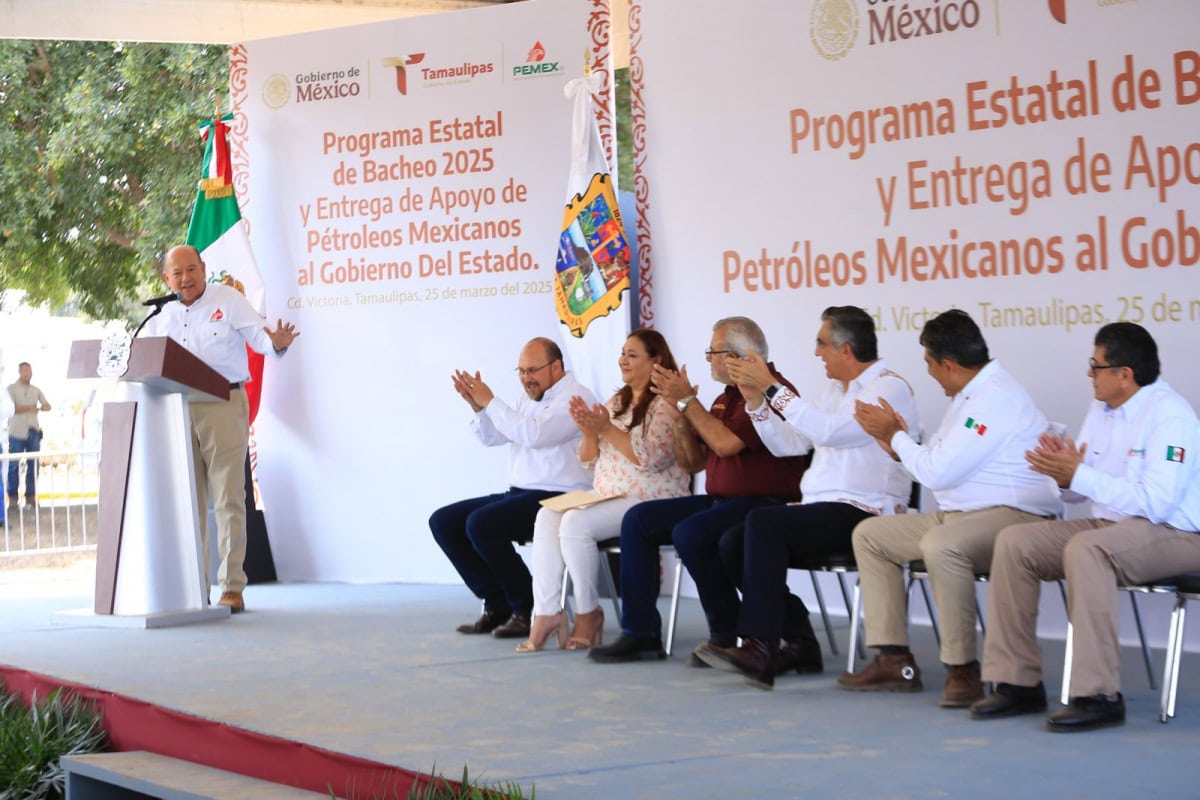 En el evento, César Raúl Ojeda Zubieta, gerente de Responsabilidad Social de PEMEX, entregó al gobernador una ambulancia de traslado equipada, un camión tipo grúa con canastilla y dos camiones recolectores y compactadores de basura; además, anunció que Petróleos Mexicanos donará cinco mil toneladas de asfalto para que sigan pavimentándose las calles de Tamaulipas.
