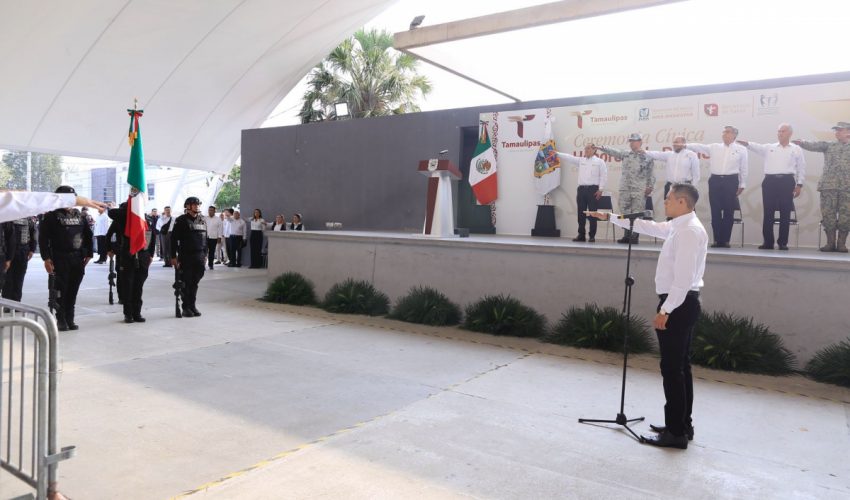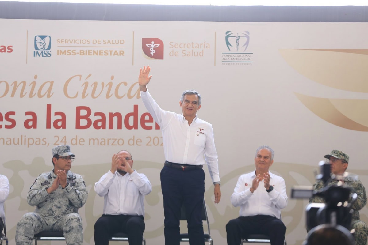 En esta ceremonia cívica, acompañaron al gobernador: Héctor Joel Villegas González, secretario general de Gobierno; Marggid Rodríguez Avendaño, coordinador general del IMSS-Bienestar en Tamaulipas; Enrique García Jaramillo, comandante de la 48 Zona Militar; Francisco Alvarado Terán, comandante de la Guardia Nacional en Tamaulipas; y Hernán de la Garza Tamez, presidente del Supremo Tribunal de Justicia, además de personal del sector salud, integrantes de la Mesa de Seguridad y funcionarios del gabinete estatal.