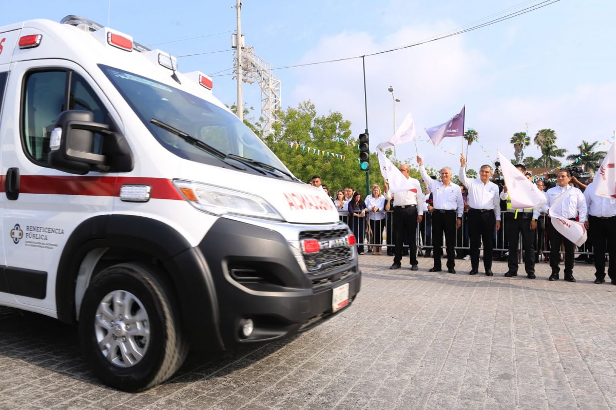 Ciudad Victoria, Tamaulipas.- Con el propósito de incrementar la capacidad operativa del Centro Regulador de Urgencias Médicas y mejorar su cobertura en la entidad, el gobernador Américo Villarreal Anaya entregó 16 nuevas ambulancias debidamente equipadas y, a la vez, exhortó a no bajar la guardia para garantizar los servicios de salud en beneficio de las y los tamaulipecos.