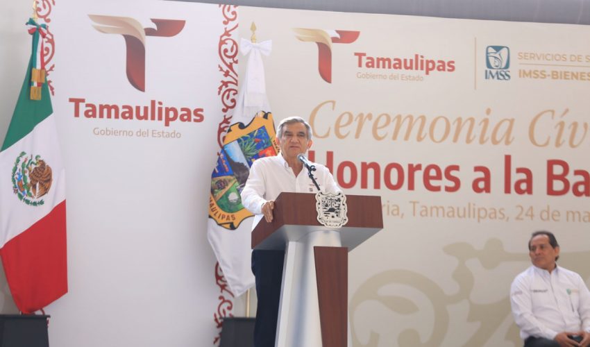 Al presidir la ceremonia cívica de honores de este lunes en la explanada de la Unidad Deportiva Adolfo Ruiz Cortines, de esta capital, el mandatario tamaulipeco destacó los esfuerzos del Gobierno del Estado para contar con mejores herramientas y la planeación adecuada para que las y los trabajadores del sector salud puedan desarrollar mejor su trabajo y sus destrezas.