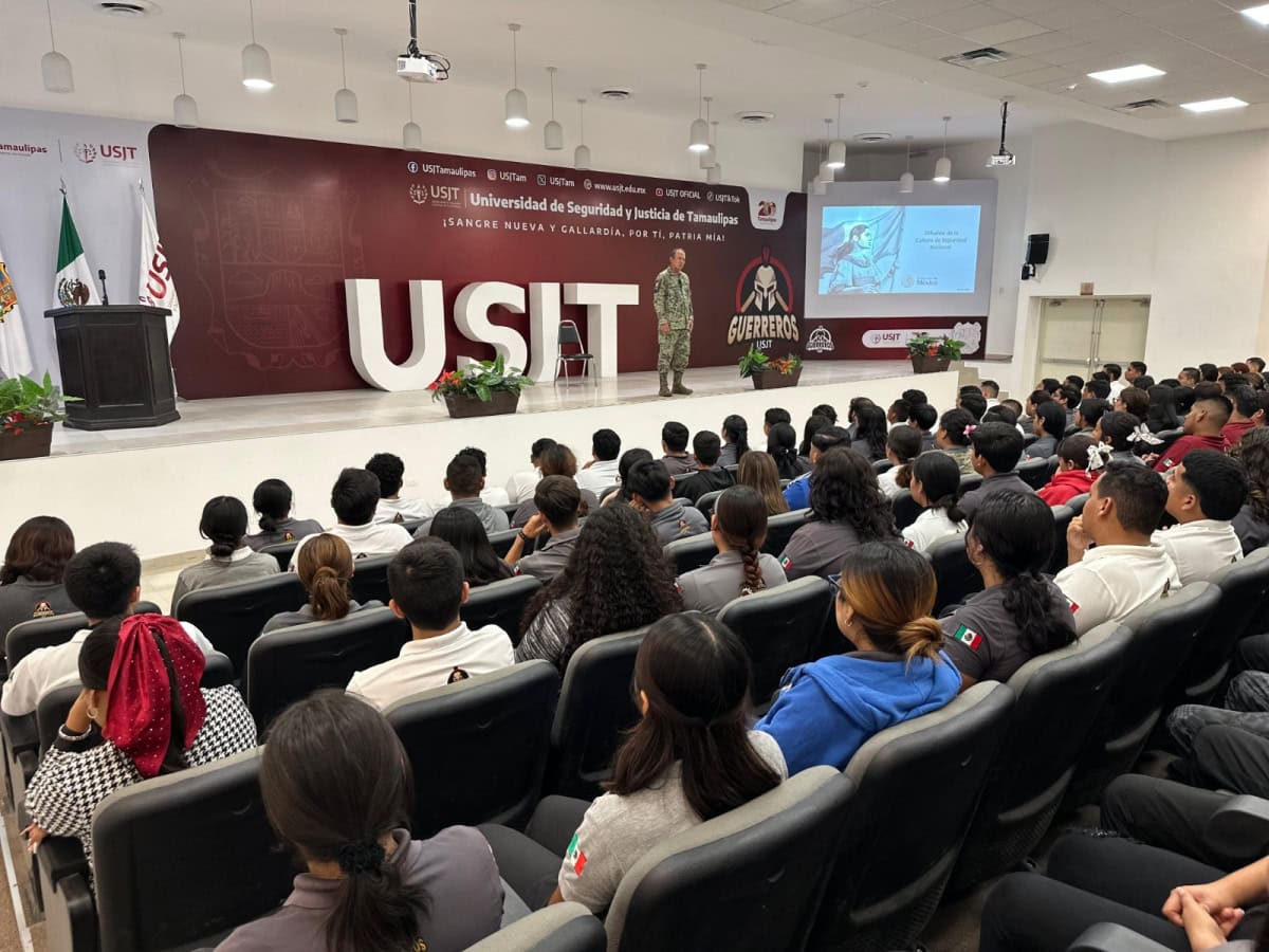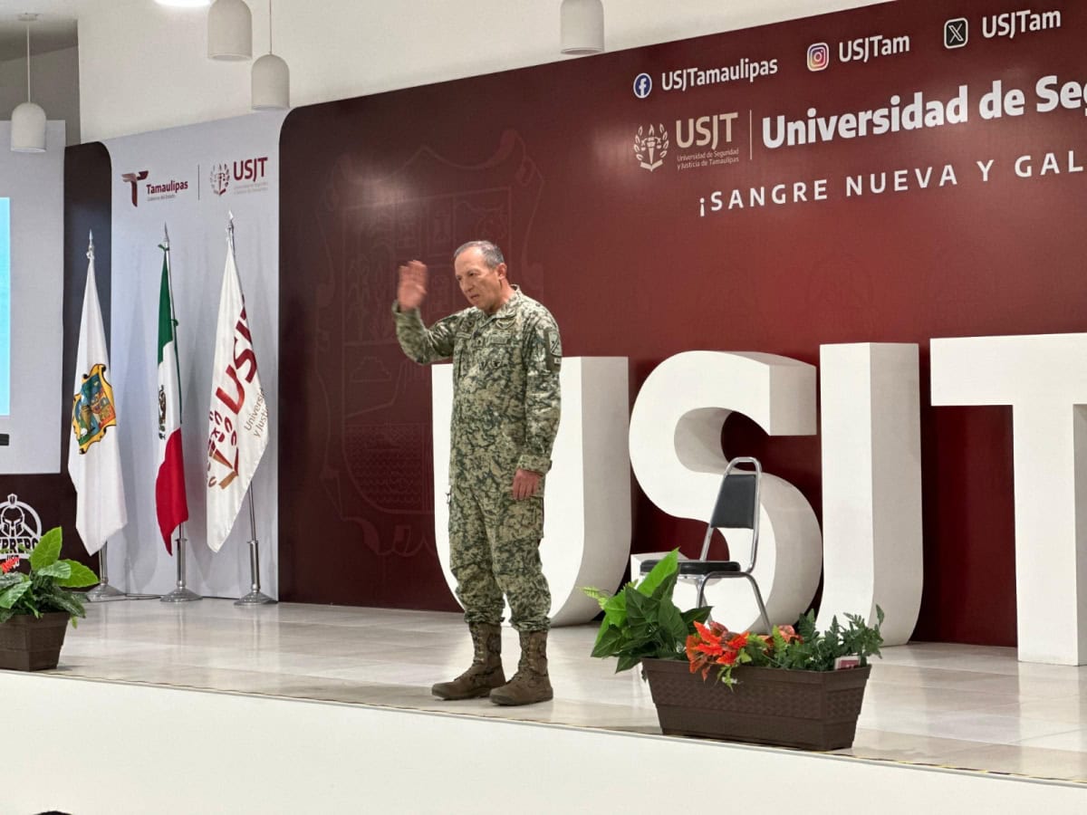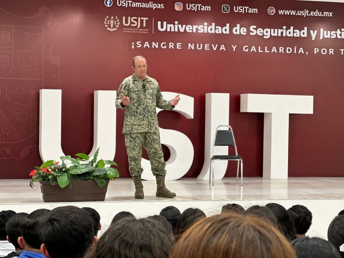 “Es un privilegio estar aquí con estos jóvenes promesa de México, de una institución como es esta Universidad de Seguridad y Justicia de Tamaulipas, en donde veo que están haciendo un buen trabajo con estos jóvenes que al igual que nosotros los soldados, nacemos, surgimos de lo que es el pueblo, con muchas ganas de salir adelante y esta es una gran oportunidad que tienen de lograr todo lo que ustedes deseen en la vida”.