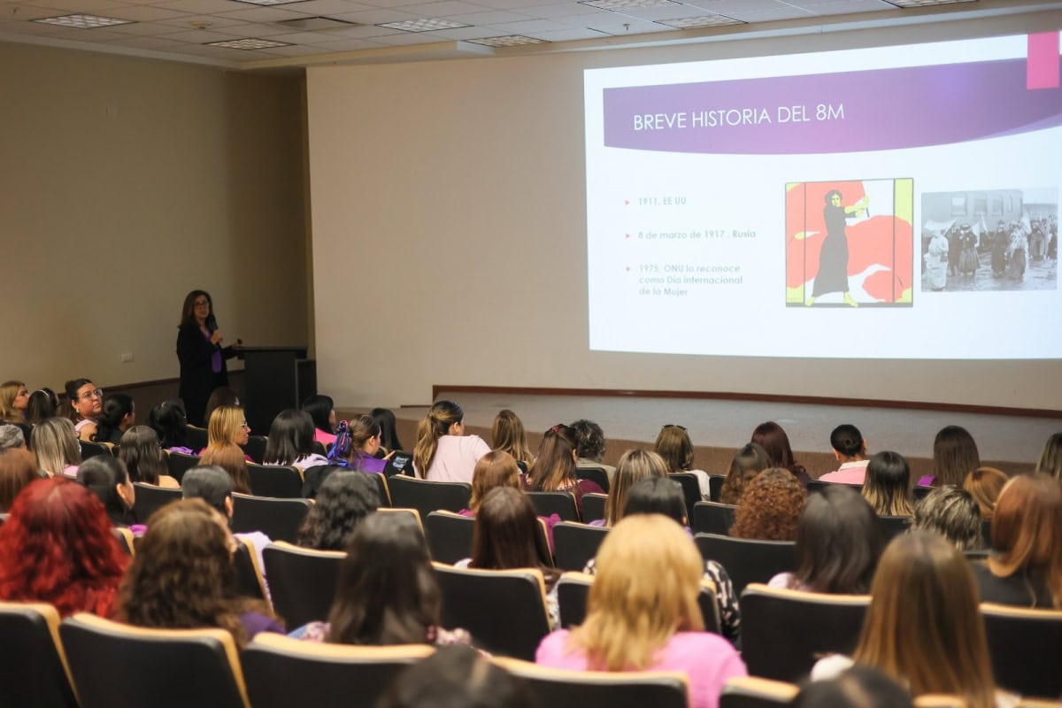 La conferencia fue impartida por la psicóloga María Gabriela Salazar De León y la maestra Sabrina Morales Chávez, con el objetivo de destacar el papel esencial de la mujer en la construcción de una sociedad más equitativa, así como reconocer su resiliencia, logros, luchas y contribuciones en diversos ámbitos.