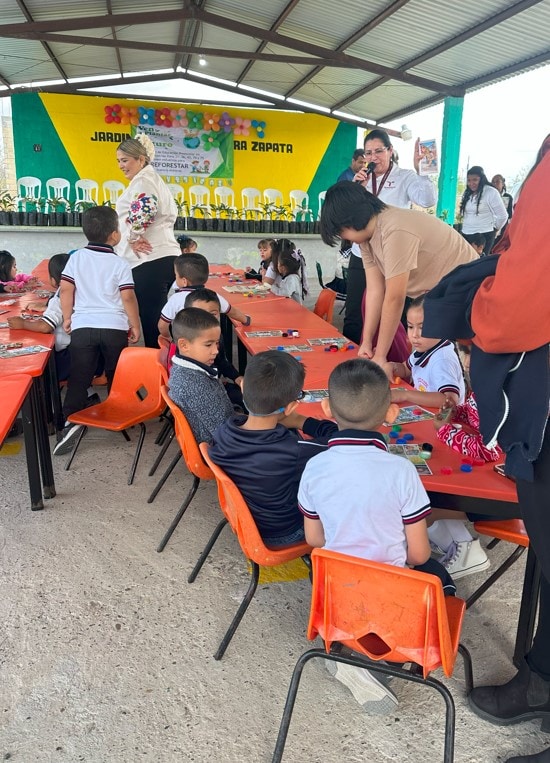 La directora de Fomento Forestal, Celene Ramírez García, en representación del secretario de Desarrollo Rural, Pesca y Acuacultura, Antonio Varela Flores, puso en marcha el taller que inicio con una campaña de reforestación en el Sector No. 9, en donde se les dirigieron unas palabras a los niños de preescolar, madres de familia y educadoras, sobre la importancia y los beneficios que tienen los árboles en nuestro entorno y vida diaria.
