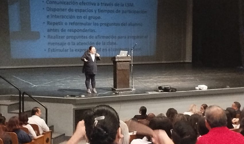 En su exposición, resaltó la relevancia de la Lengua de Señas Mexicana como un derecho lingüístico y la implementación de metodologías educativas que garanticen la plena inclusión de los estudiantes con discapacidad auditiva.
