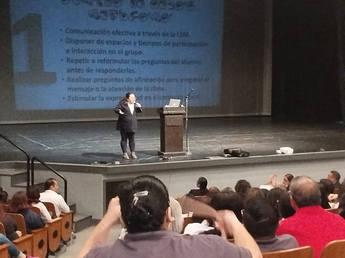 En su exposición, resaltó la relevancia de la Lengua de Señas Mexicana como un derecho lingüístico y la implementación de metodologías educativas que garanticen la plena inclusión de los estudiantes con discapacidad auditiva.