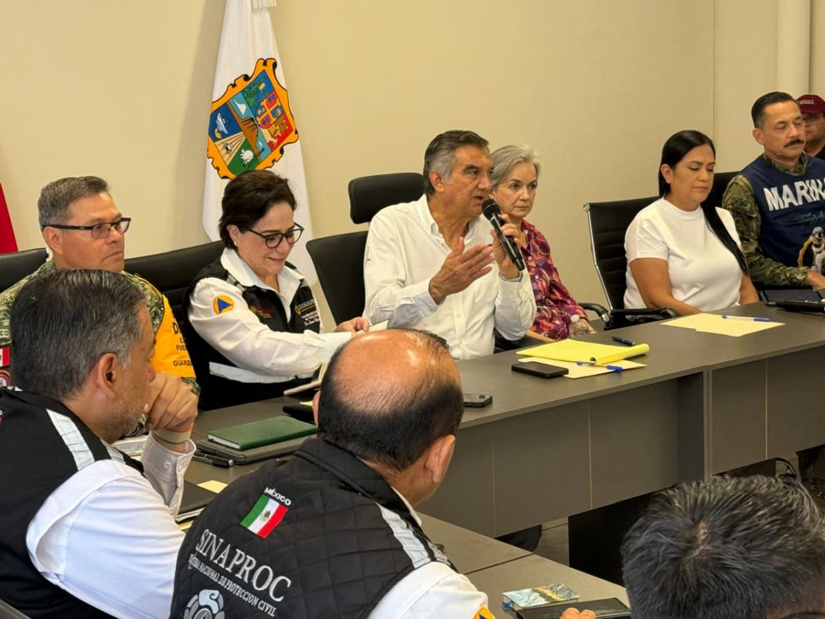 Reynosa, Tamaulipas.– Hace unos minutos inició la reunión de evaluación por las afectaciones derivadas de las fuertes lluvias atípicas registradas el pasado jueves en el municipio de Reynosa.