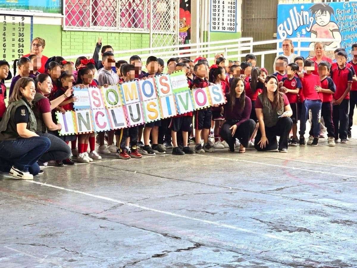 “Nos da mucho gusto el poder estar el día de hoy con ustedes dando el inicio a las jornadas de pláticas de sensibilización sobre inclusión. Comparto con ustedes que el Sistema Integral de los Derechos de Niñas, Niños y Adolescentes promueve sus derechos como la educación, el juego, la salud, la familia, entre otros, a través de estas actividades en escuelas”, señaló.