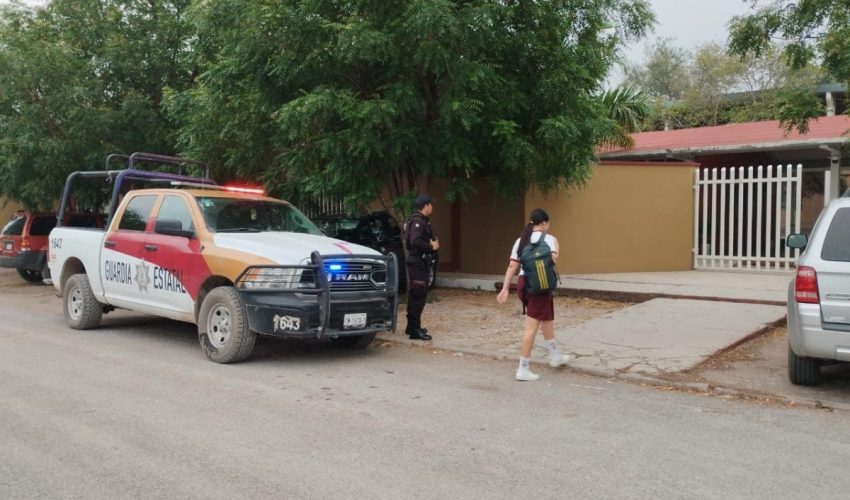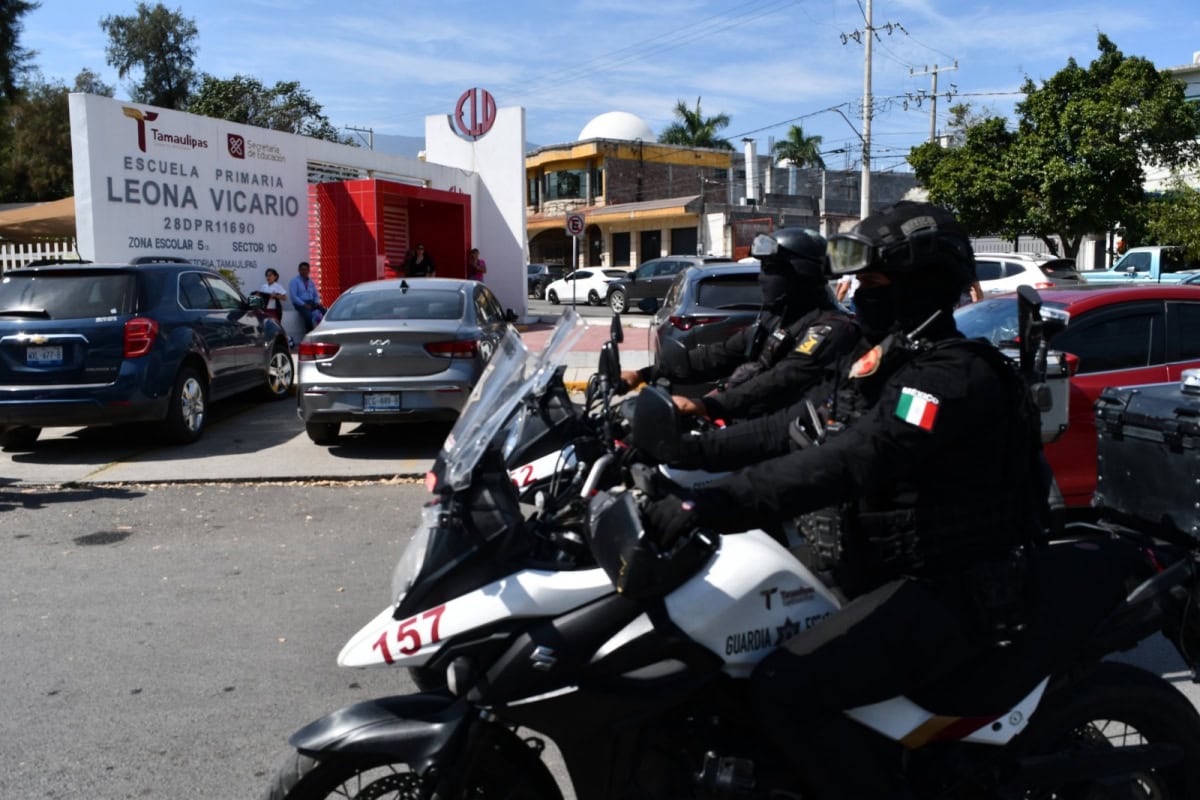 Ciudad Victoria, Tamaulipas.- Con presencia policial en diferentes horarios, el Operativo Escuela Segura implementado por la Guardia Estatal mantiene la vigilancia en planteles educativos de diferentes niveles, previniendo delitos patrimoniales y faltas administrativas en estas instituciones.