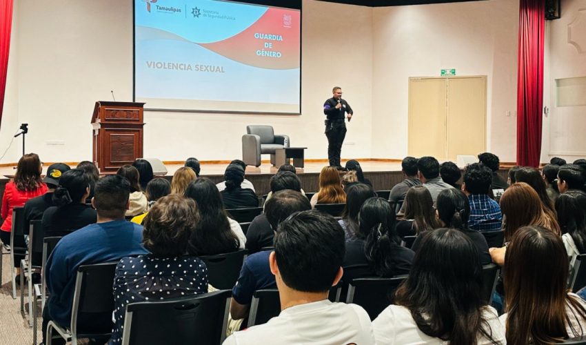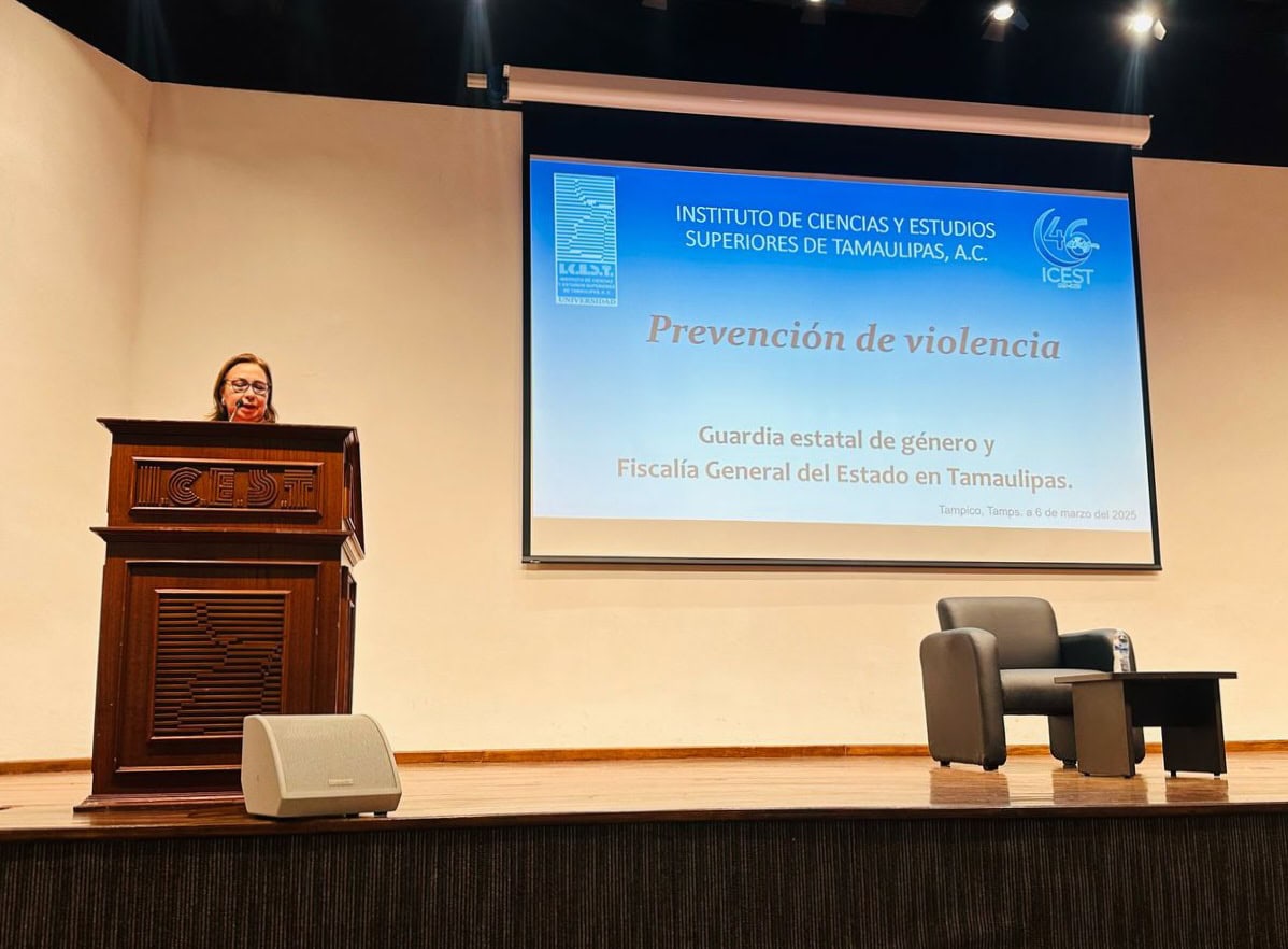 Tampico, Tamaulipas.- Dentro de las actividades que integran la Jornada Cultural para la Prevención de Violencia, personal de la Guardia Estatal de Género en el municipio de Tampico visitó el plantel del Instituto De Ciencias y Estudios Superiores De Tamaulipas (ICEST) en donde brindó una plática informativa a estudiantes.