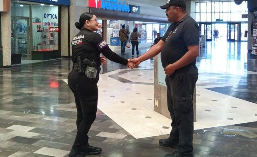 El personal de la Guardia Estatal de Género también realiza la entrega de trípticos informativos y brinda orientación sobre las líneas de emergencia 911 y 089.