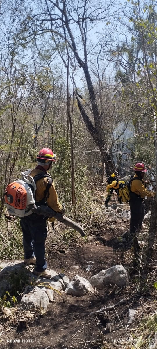 Pie a tierra se ha desplegado personal de brigadas federales, estatales, municipales y rurales que se suman a los esfuerzos para controlar el complejo de incendios que viene afectando los ecosistemas al sur de Tamaulipas.
