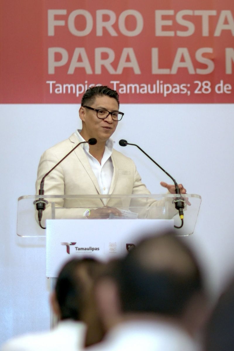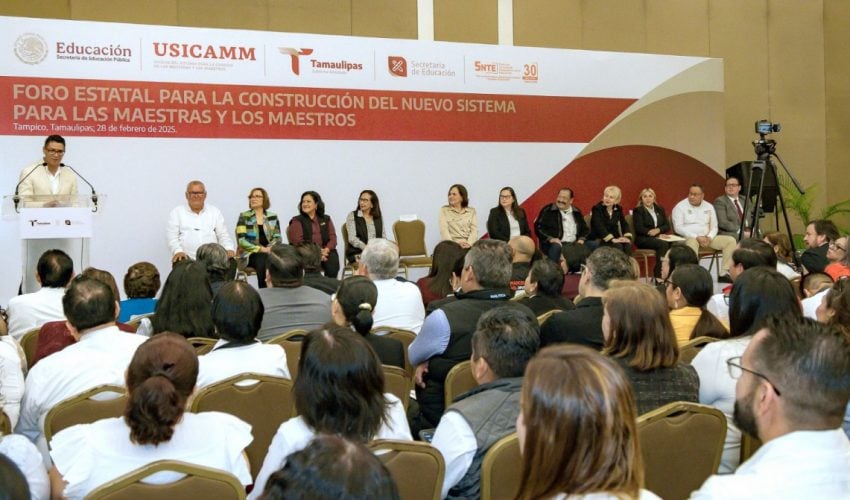 Tampico, Tamaulipas.- En el marco del Foro Estatal para la Construcción del Nuevo Sistema para las Maestras y los Maestros realizado en el municipio de Tampico, el coordinador de asuntos jurídicos de la USICAMM del Gobierno Federal, Miguel Ángel Guerrero López, reafirmó el compromiso de la presidenta de México, Claudia Sheinbaum Pardo con las maestras y maestros de México y de Tamaulipas.