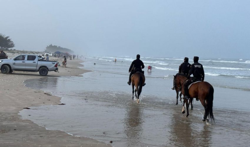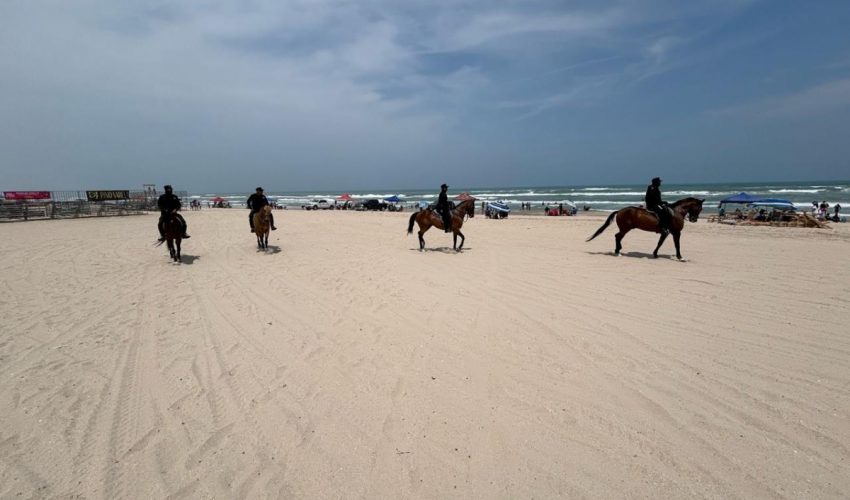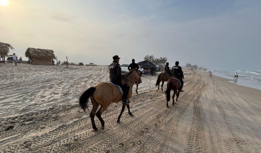 Soto la Marina, Tamaulipas.- Como parte del Operativo Semana Santa Segura, personal del Agrupamiento Montado de la Guardia Estatal mantiene la presencia y vigilancia en La Pesca.